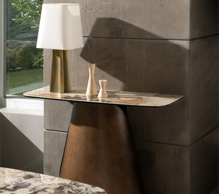 Innerhalb derselben Kollektion sticht auch die Konsole 100×40 cm hervor: ein vielseitiges Element, das als Möbel für den Eingangsbereich, als Beistelltisch oder als Präsentationsfläche für Dekorationen genutzt werden kann.