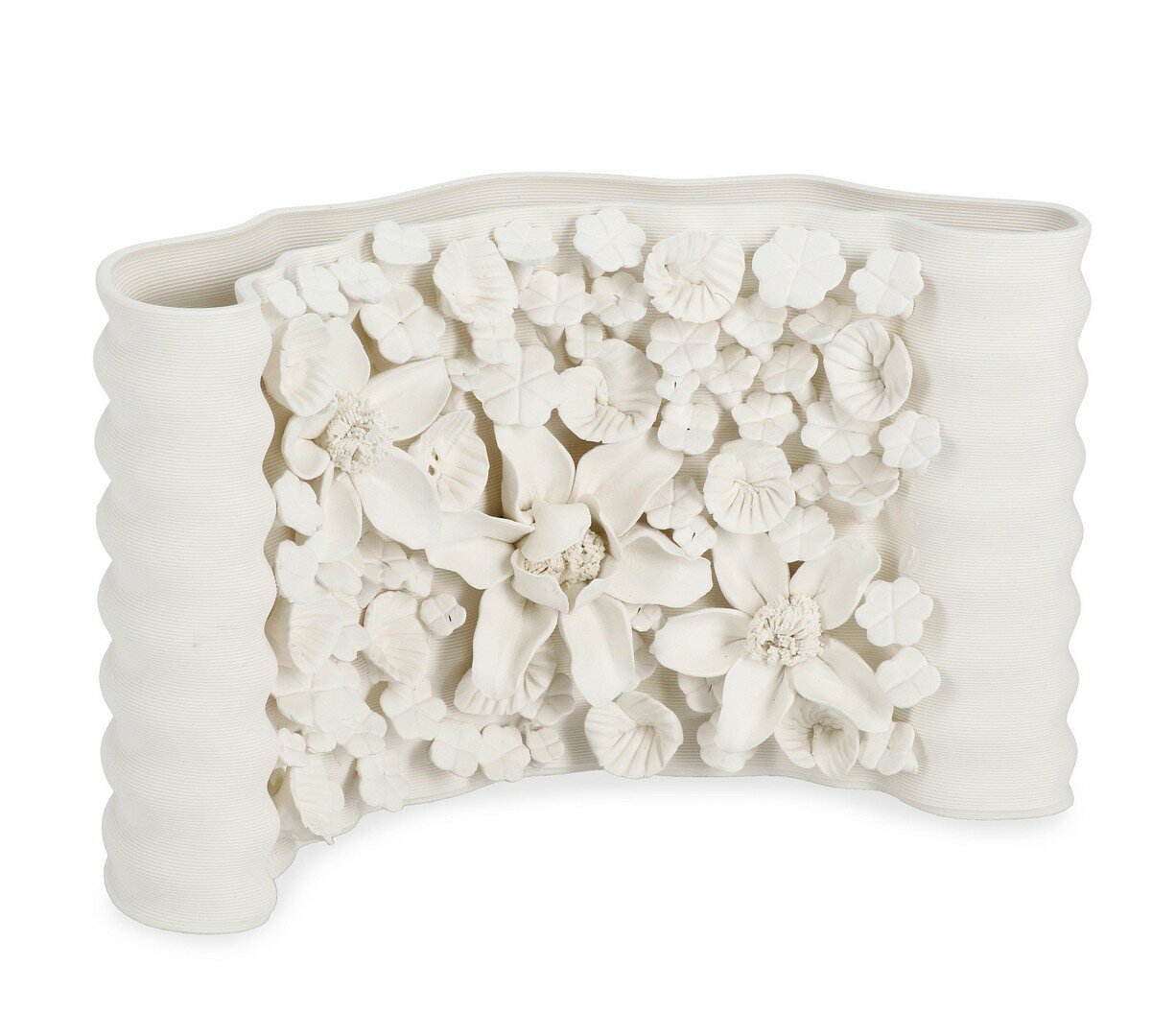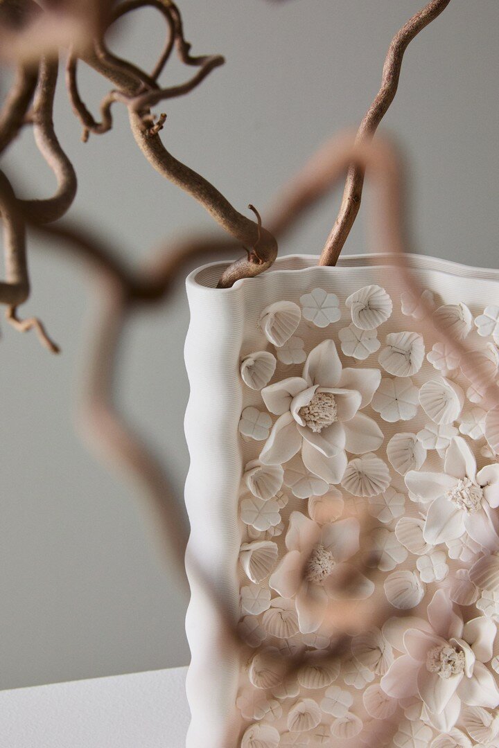 GLAZED CERAMIC, WATERPROOF. 3D PRINTED VASE WITH HANDMADE APPLICATIONS. ANY VARIATIONS IN COLOUR, SHADE OR IMPERFECTIONS ARE TO BE CONSIDERED A CHARACTERISTIC OF UNIQUENESS.