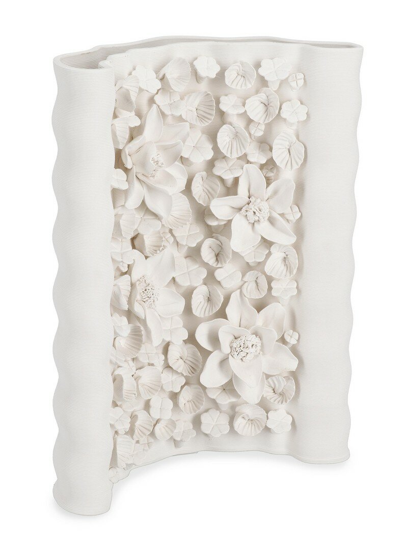 GLAZED CERAMIC, WATERPROOF. 3D PRINTED VASE WITH HANDMADE APPLICATIONS. ANY VARIATIONS IN COLOUR, SHADE OR IMPERFECTIONS ARE TO BE CONSIDERED A CHARACTERISTIC OF UNIQUENESS.