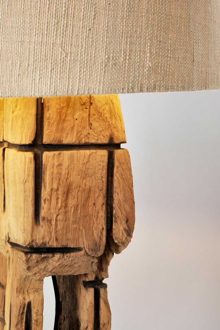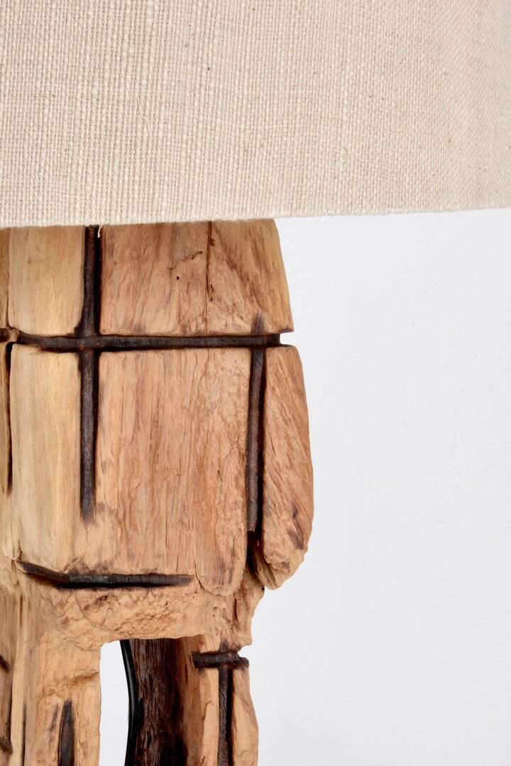 RECYCLED TEAK WOOD, NATURAL WATER-BASED FINISH. COTTON SHADE. WOODEN BASE. SHAPE AND SIZE ARE INDICATIVE. ALL PRODUCTS WILL BE DIFFERENT FROM EACH OTHER. LAMP: E27 MAX 60W, E27 11W COMP. FLUOR. INTEGR. RISP. EN., E27 42W ALOG. RISP. EN. BULB NOT INCLUDED. CABLE LENGTH: 1.9 MT. DISTANCE BETWEEN LAMP AND SWITCH: 100 CM. TO BE ASSEMBLED.