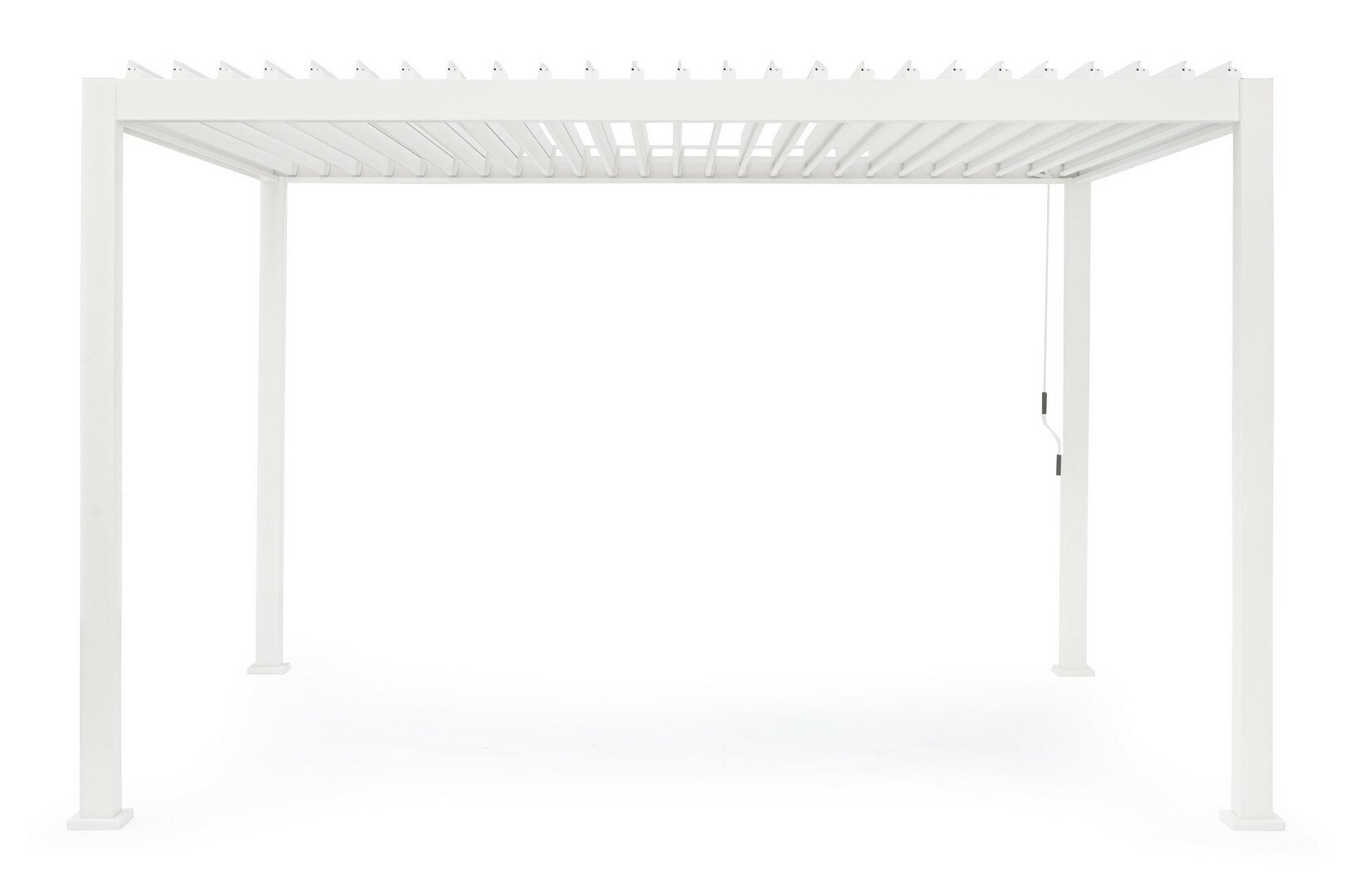 STRUCTURE IN POWDER-COATED ALUMINIUM (POLYESTER). SUPPORTING POLES 111X111MM, CROSSPIECES 140X75MM. GALVANIZED STEEL LAMELLAR ROOF ADJUSTABLE BY CRANK.SUNSHADE BLADES 173X30MM. WATER FLOW SYSTEM INTEGRATED INSIDE THE SUPPORTING POLES. STAINLESS STEEL SCREWS. TO BE ASSEMBLED.