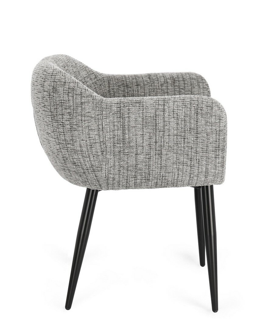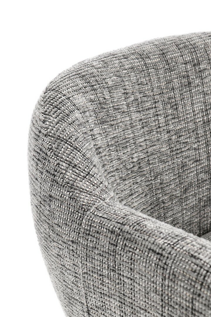 STRUCTURE AND LEGS IN POWDER-COATED STEEL. SEAT IN STEEL AND PLYWOOD. PADDING IN POLYURETHANE FOAM. COVER IN 100% POLYESTER. LEGS TO BE ASSEMBLED.