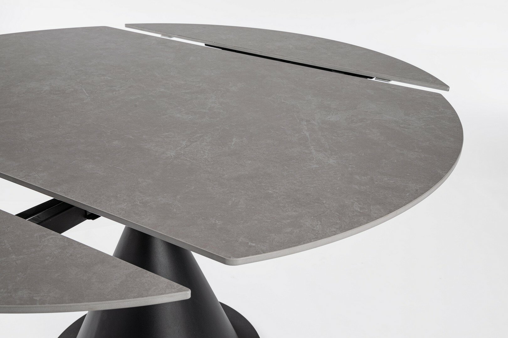 BASE IN EPOXY POWDER COATED STEEL. PORCELAIN STONEWARE TOP WITH MATT GREY MARBLE EFFECT. TO BE ASSEMBLED.