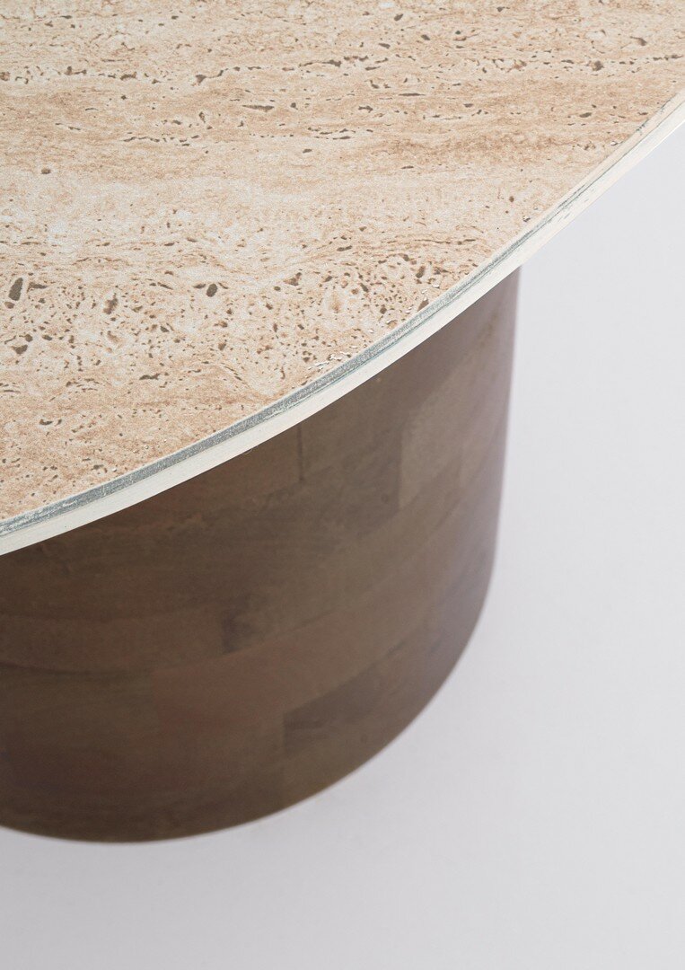 CERAMIC TOP (TRAVERTINE EFFECT). BASE IN MANGO WOOD. TO BE ASSEMBLED