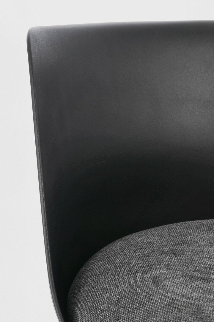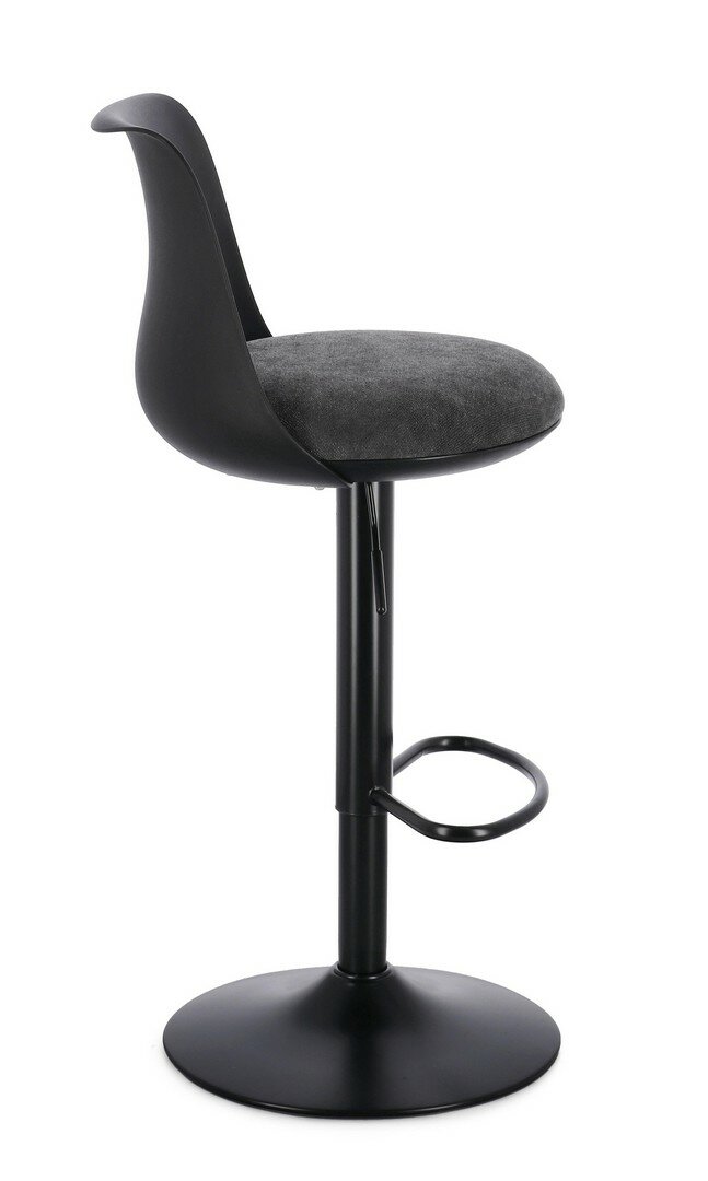 ESTRUCTURA DE ACERO BARNIZADO CON POLVO EPOXI. BASE DE Ø41CM. ASIENTO Y RESPALDO DE POLIPROPILENO (PP). ASIENTO CON RELLENO DE ESPUMA DE POLIURETANO DENSIDAD 30KG/M³, TAPIZADO DE POLIÉSTER. ALTURA REGULABLE. PARA MONTAR.
