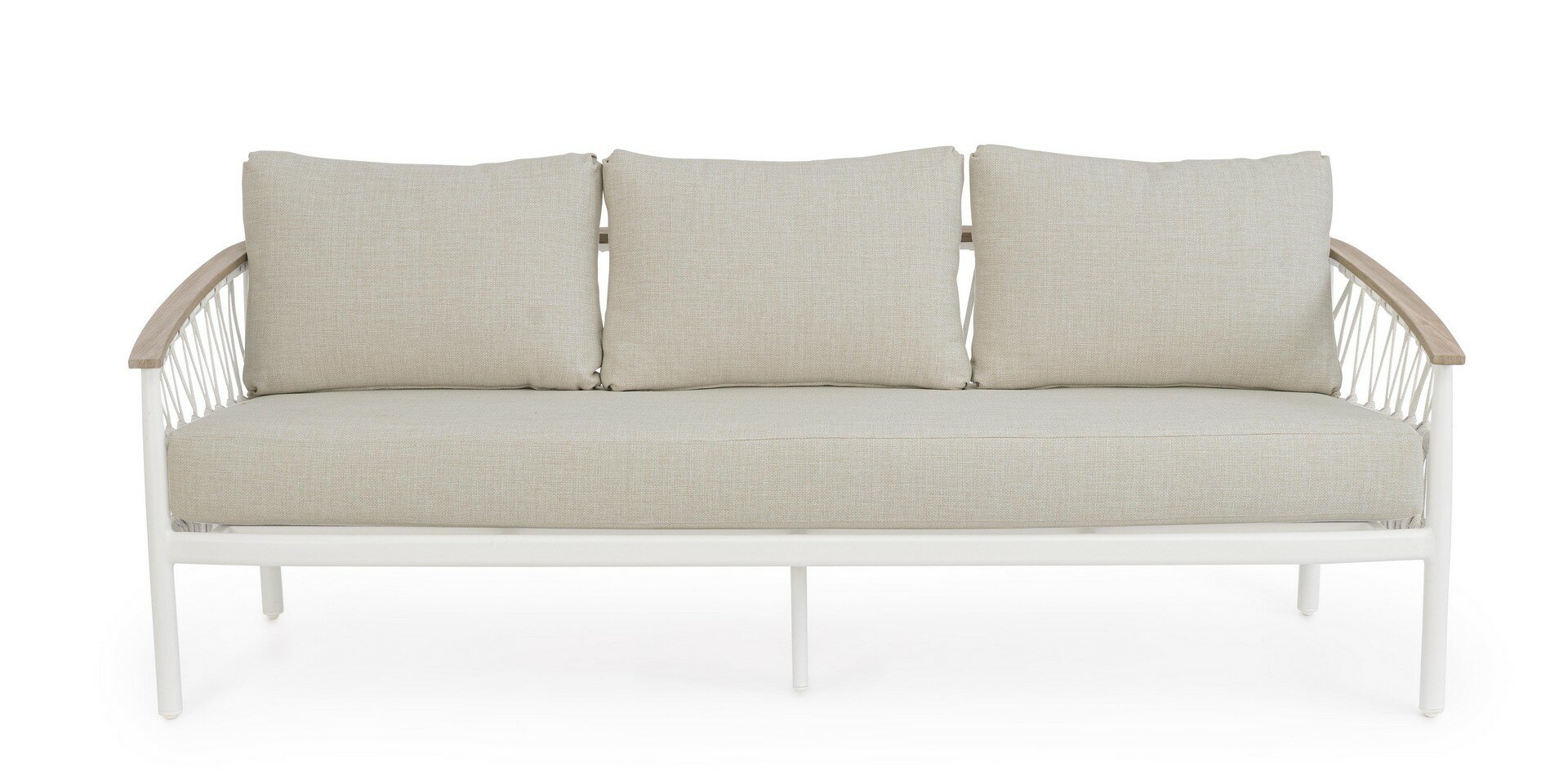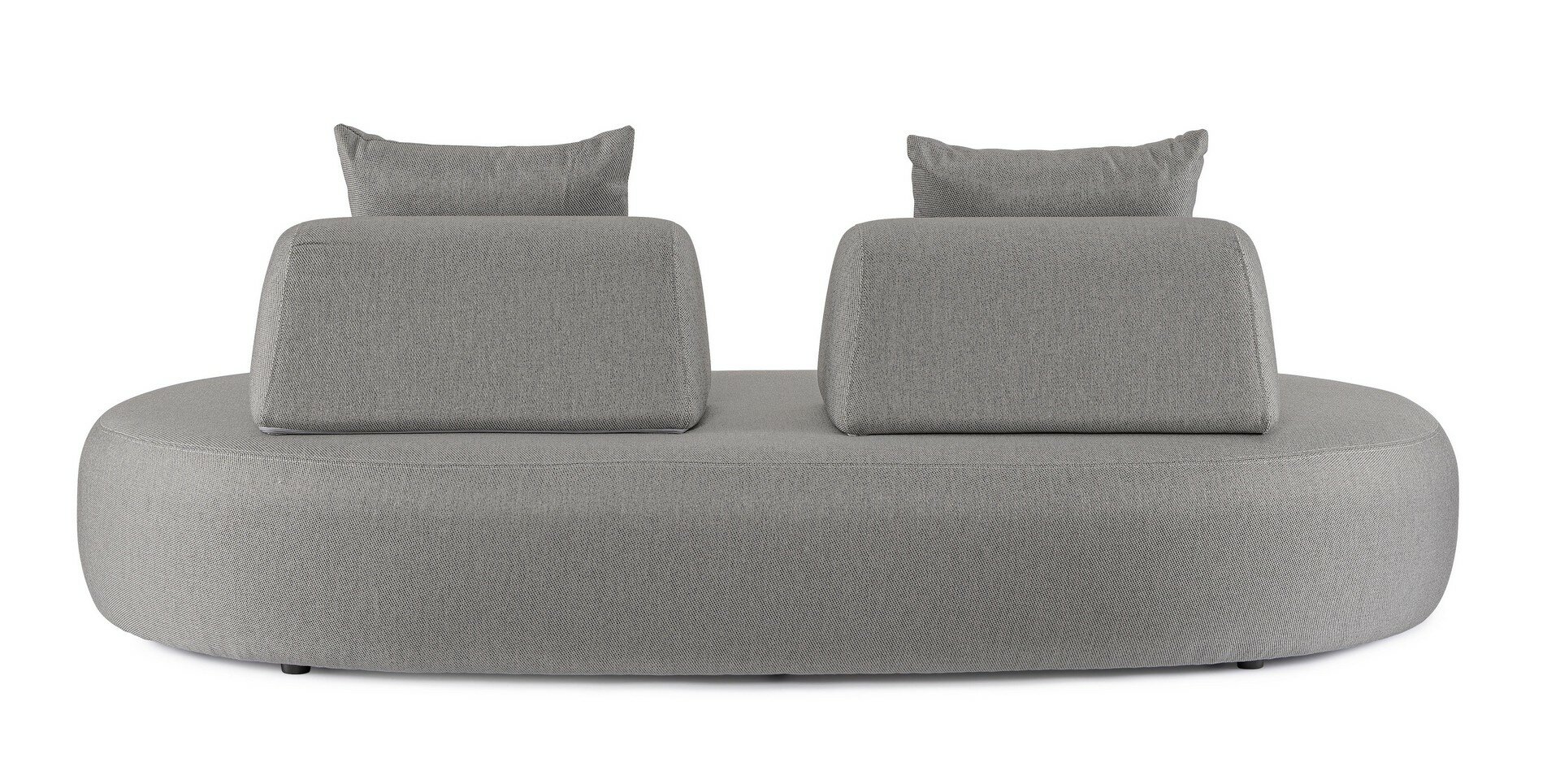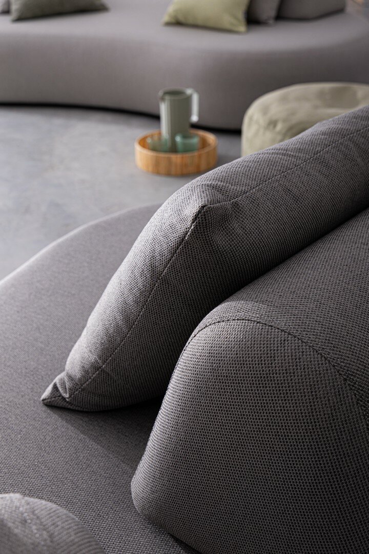 SOFÁ CON ESTRUCTURA DE ALUMINIO. RESPALDO REMOVIBLE CON ESTRUCTURA DE ACERO GALVANIZADO EN CALIENTE Y BARNIZADO A POLVO (POLIÉSTER). ASIENTO, RESPALDO Y COJINES DESENFUNDABLES CON TEJIDO PARA EXTERIORES OLEFÍN (100% POLIPROPILENO 285G/M2), REPELENTE AL AGUA Y RESISTENTE A LOS RAYOS UV (GRADO 7), INTERIOR IMPERMEABILIZADO CON REVESTIMIENTO DE TEJIDO (POLIURETANO). RELLENO DE ESPUMA DE POLIURETANO. ASIENTO (38KG/M3), RESPALDO (20KG/M3). ARTÍCULO CONSTITUIDO POR: N°1 SOFÁ, N°2 RESPALDO MEDIA LUNA, N°2 COJINES.