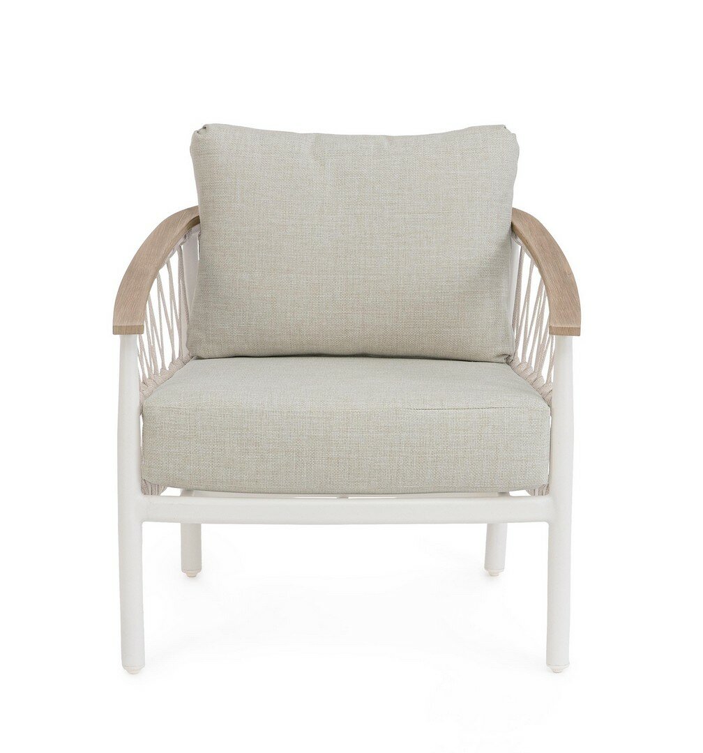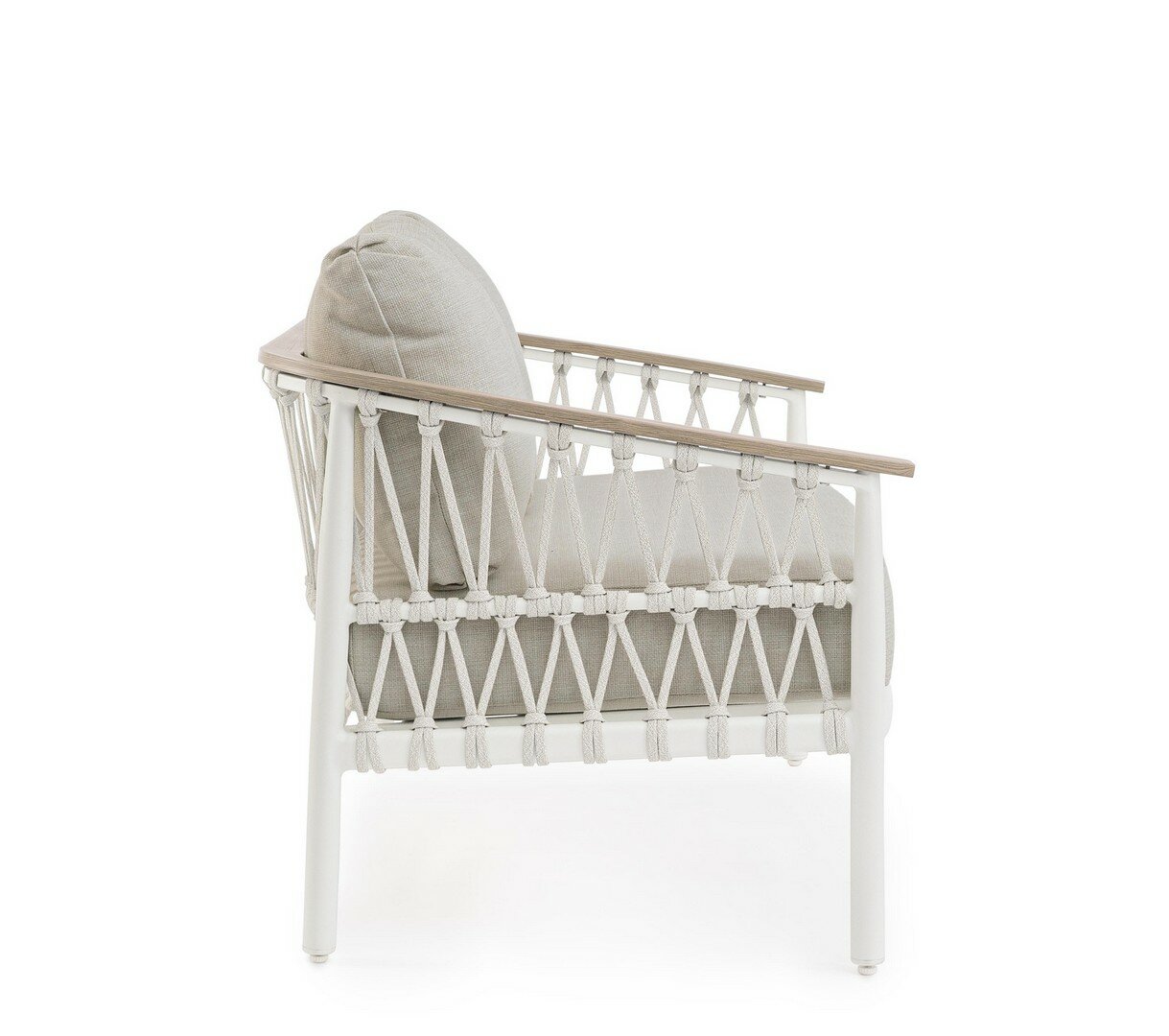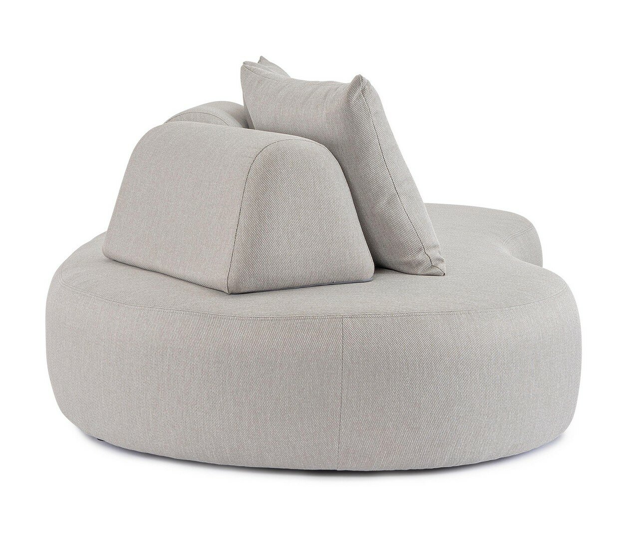SOFÁ CON ESTRUCTURA DE ALUMINIO. RESPALDO REMOVIBLE CON ESTRUCTURA DE ACERO GALVANIZADO EN CALIENTE Y BARNIZADO A POLVO (POLIÉSTER). ASIENTO, RESPALDO Y COJINES DESENFUNDABLES CON TEJIDO PARA EXTERIORES OLEFÍN (100% POLIPROPILENO 285G/M2), REPELENTE AL AGUA Y RESISTENTE A LOS RAYOS UV (GRADO 7), INTERIOR IMPERMEABILIZADO CON REVESTIMIENTO DE TEJIDO (POLIURETANO). RELLENO DE ESPUMA DE POLIURETANO. ASIENTO (38KG/M3), RESPALDO (20KG/M3). ARTÍCULO CONSTITUIDO POR: N°1 SOFÁ, N°2 RESPALDO MEDIA LUNA, N°2 COJINES.