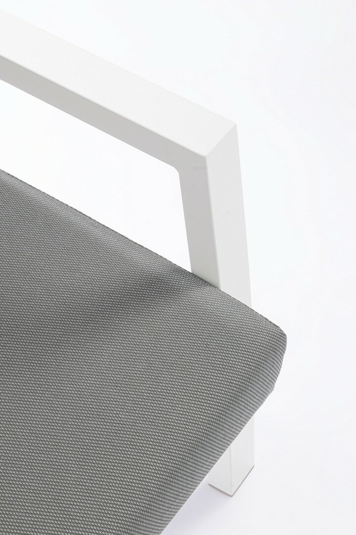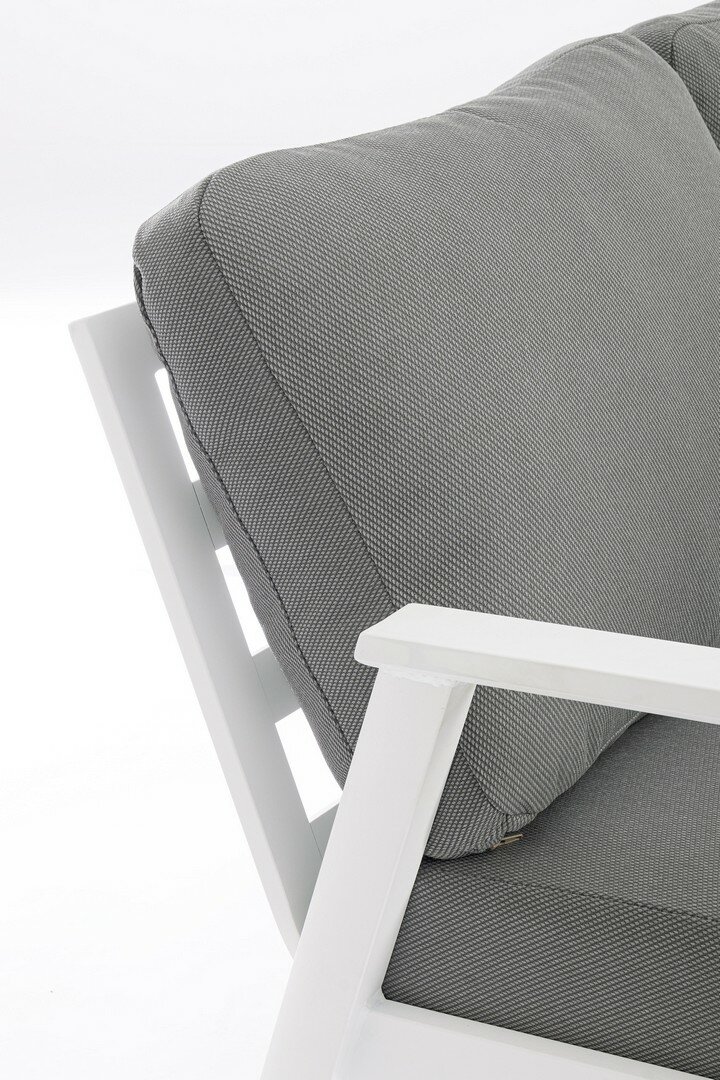 ESTRUCTURA DE ALUMINIO BARNIZADO CON POLVO (POLIÉSTER). COJINES DESENFUNDABLES CON TEJIDO REPELENTE AL AGUA OLEFIN (100% POLIPROPILENO). LOS SOFÁS 2PL Y 3PL SON INTERCAMBIABLES, SE PUEDEN COLOCAR TANTO A LA DERECHA COMO A LA IZQUIERDA DE LA ESQUINA. TORNILLERIA DE ACERO INOXIDABLE. PIES AJUSTABLES. LATERALES PARA MONTAR.