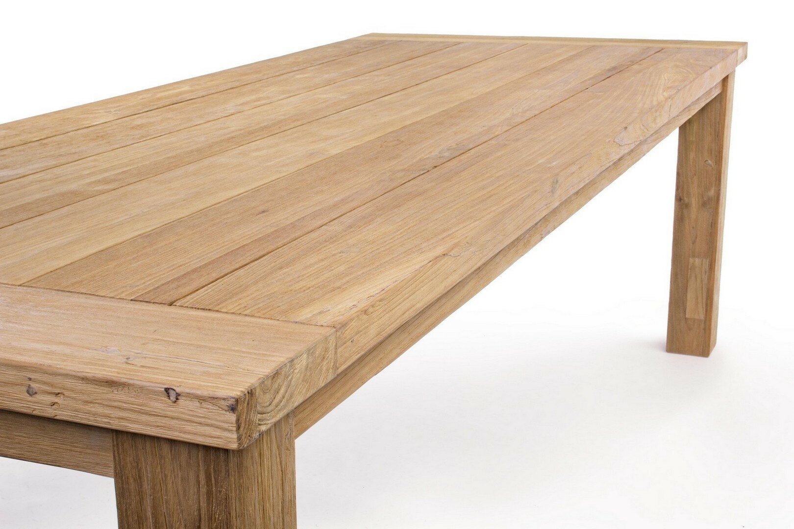 TECA RECICLADA SVLK (MADERA CERTIFICADA PROCEDENTE DE BOSQUES SOSTENIBLES), ACABADO RÚSTICO, ESPESOR TABLERO 4,5 CM, PATAS 11X11 CM. TORNILLERÍA DE ACERO INOXIDABLE. EL PRODUCTO DE MADERA RECICLADA SE CARACTERIZA POR LA PRESENCIA DE TACOS DE MADERA DE DIFERENTES FORMAS Y COLORES. LAS GRIETAS, FISURAS O IMPERFECCIONES, QUE TAMBIÉN PUEDEN GENERARSE CON EL TIEMPO, SON CARACTERÍSTICAS DE ESTE MATERIAL Y HACEN QUE CADA PIEZA SEA ÚNICA Y ORIGINAL. PATAS PARA MONTAR.