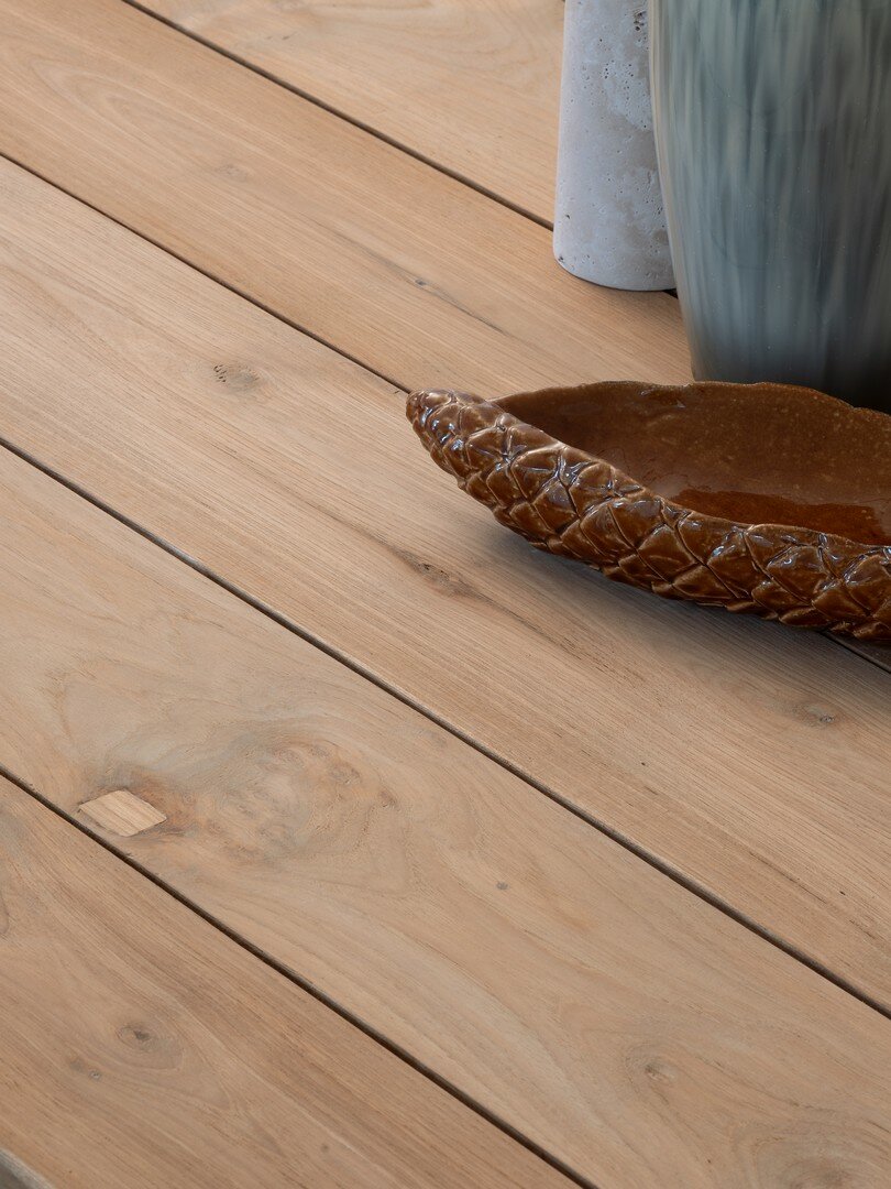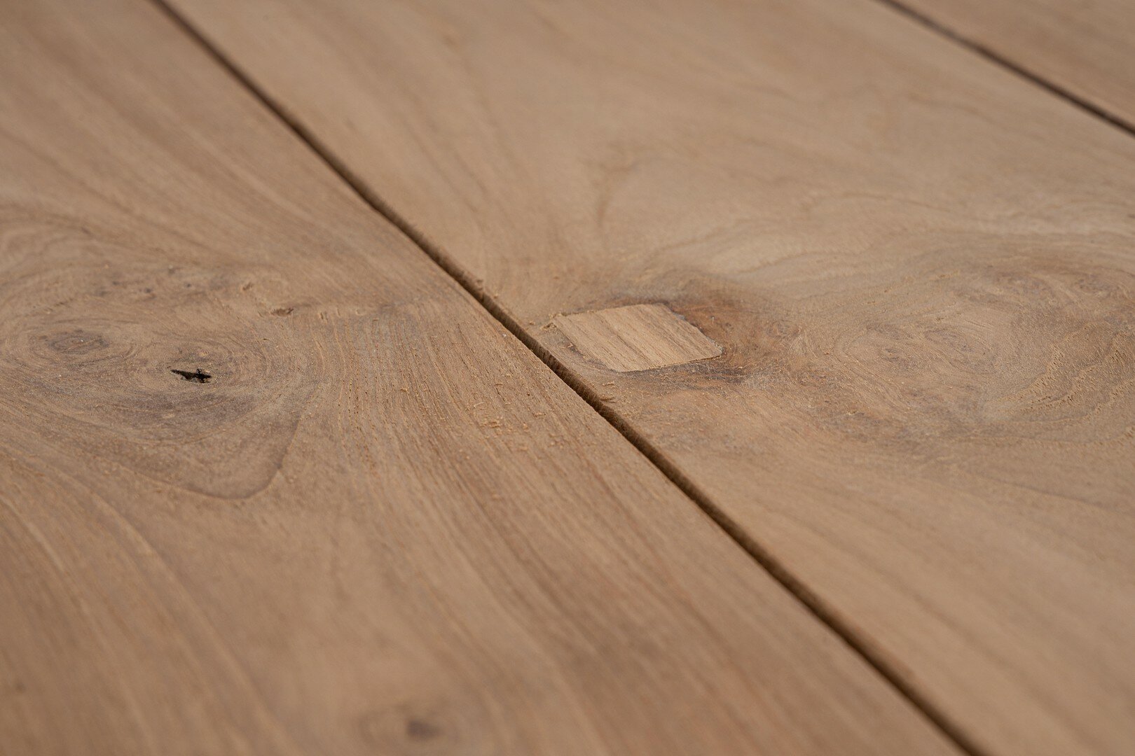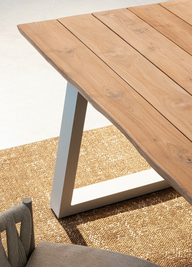 TABLERO DE TECA (SECCION ORIGINAL DEL TRONCO) – SVLK (MADERA CERTIFICADA PROCEDENTE DE BOSQUES SOSTENIBLES). ACABADO NATURAL. PATAS DE ALUMINIO BARNIZADO A POLVO (POLIESTER). TORNILLERIA DE ACERO INOXIDABLE. PIES REGULABLES. ESTE PRODUCTO SE CARACTERIZA POR LA PRESENCIA DE TACOS DE MADERA DE LA MISMA NATURALEZA. LAS GRIETAS, FISURAS O IMPERFECCIONES, QUE TAMBIÉN PUEDEN GENERARSE CON EL TIEMPO, SON CARACTERÍSTICAS DE ESTE MATERIAL Y HACEN QUE CADA PIEZA SEA ÚNICA Y ORIGINAL. PATAS PARA MONTAR. ATENCIÓN CÓDIGO COMBINADO.