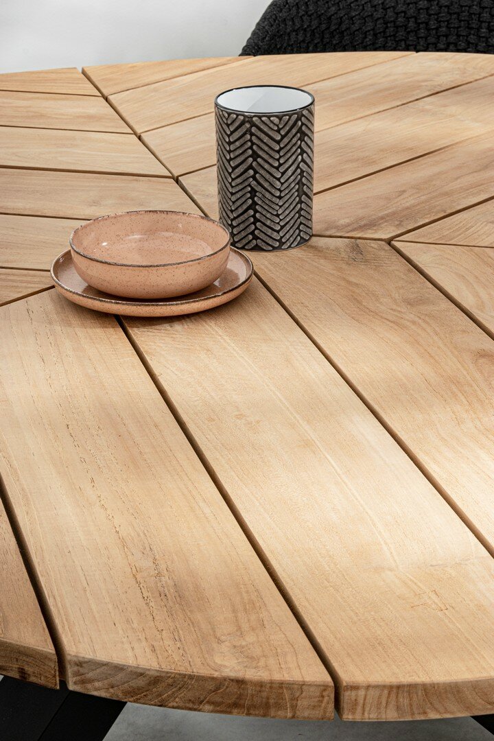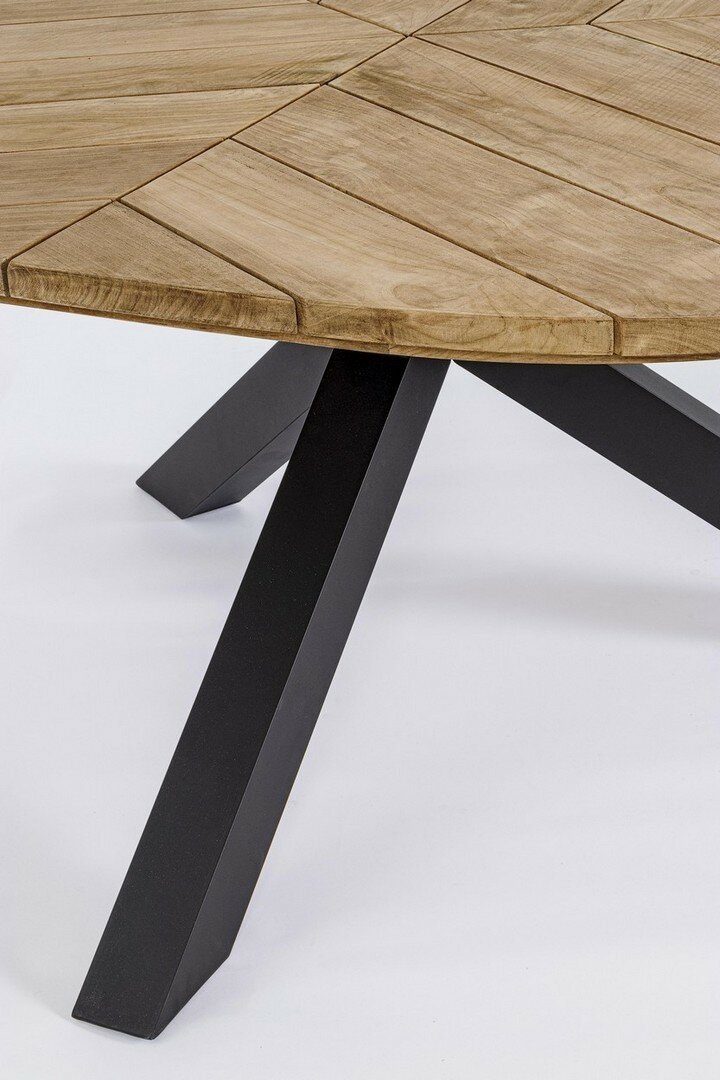 TABLERO DE MADERA DE TECA (CLASE A) – SVLK (MADERA CERTIFICADA PROCEDENTE DE BOSQUES SOSTENIBLES). PATAS DE ALUMINIO BARNIZADO A POLVO (POLIÉSTER). TORNILLERÍA DE ACERO INOXIDABLE. PIES REGULABLES. PATAS PARA MONTAR.