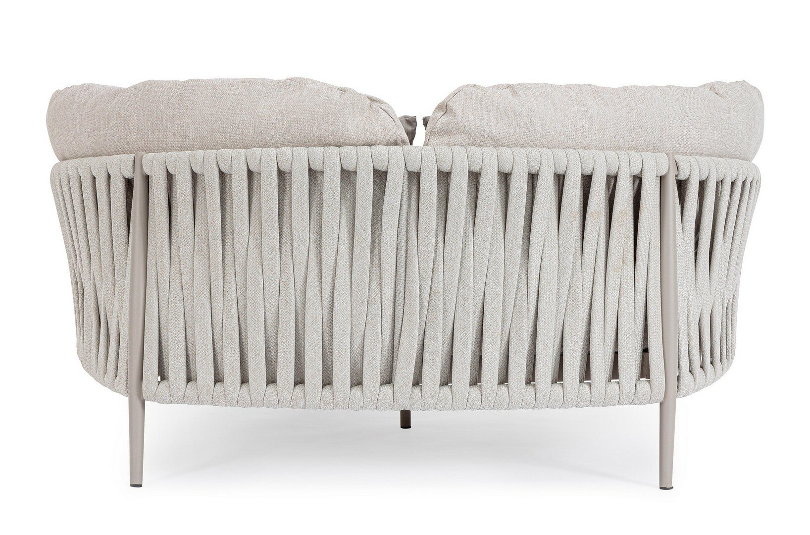 STRUCTURE EN ALUMINIUM PEINT À POUDRE (POLYESTER). TRESSAGE AVEC DES CORDES EN TETORON (100% POLYESTER) AVEC REMBOURRAGE EN CAOUTCHOUC (POLYÉTHYLÈNE). COUSSIN ASSISE ET DE DOSSIER DÉHOUSSABLE AVEC TISSU HYDROFUGE OLEFIN (100% POLYPROPYLÈNE).