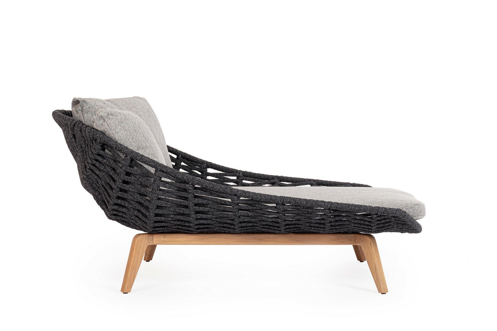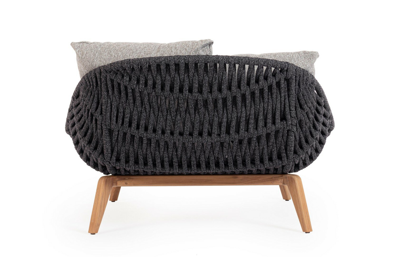 STRUCTURE EN ALUMINIUM PEINT À POUDRE (POLYESTER). PIEDS EN TECK – SVLK (BOIS CERTIFIÉ PROVENANT DE FORÊTS DURABLES). TRESSAGE POUR L’EXTÉRIEUR EN CORDE (POLYPROPYLÈNE). COUSSINS DÉHOUSSABLES AVEC HYDROFUGE SUNPROOF OLEFIN (100%POLYPROPYLENE). VIS EN ACIER INOXYDABLE. PIEDS À ASSEMBLER.