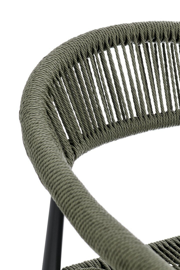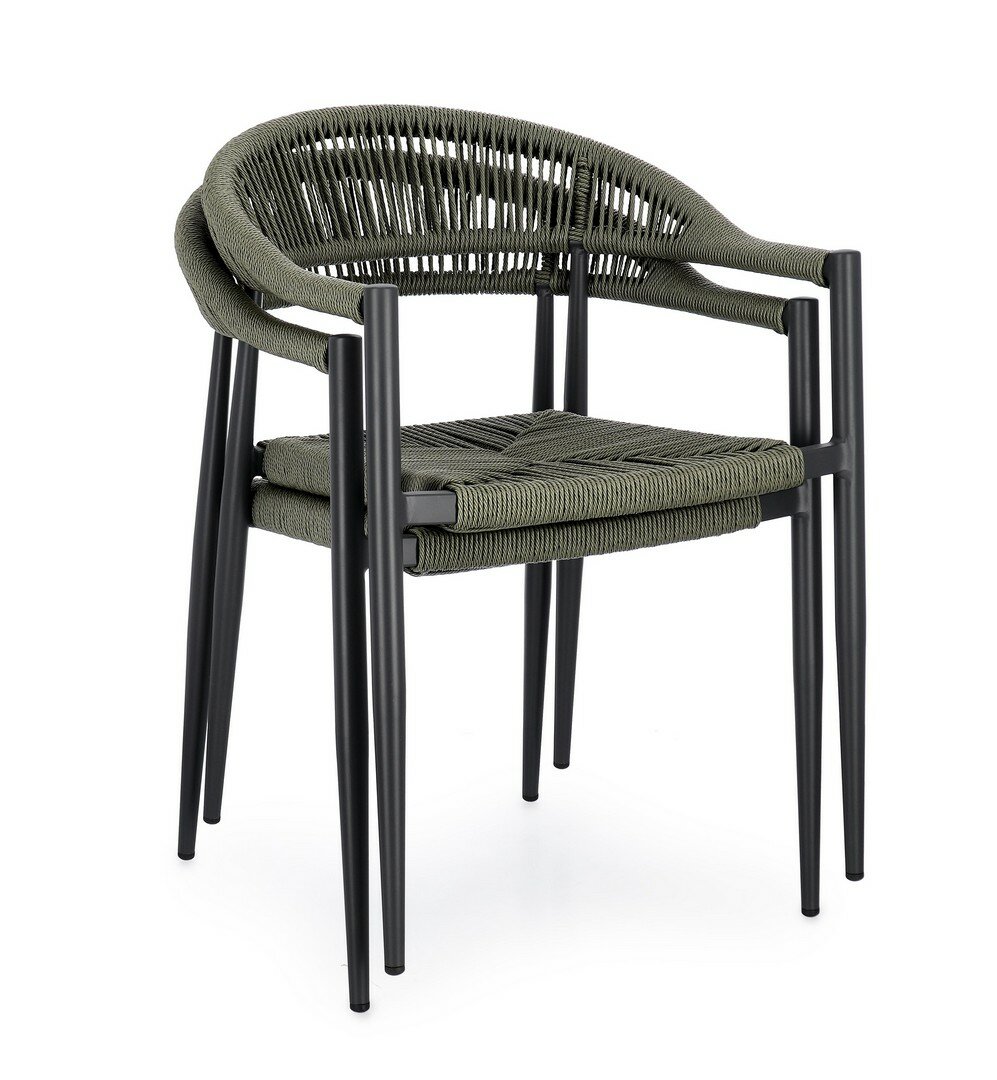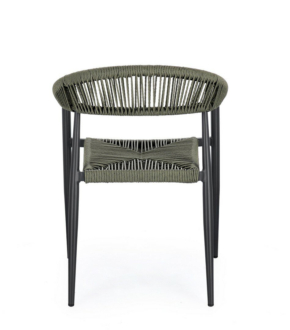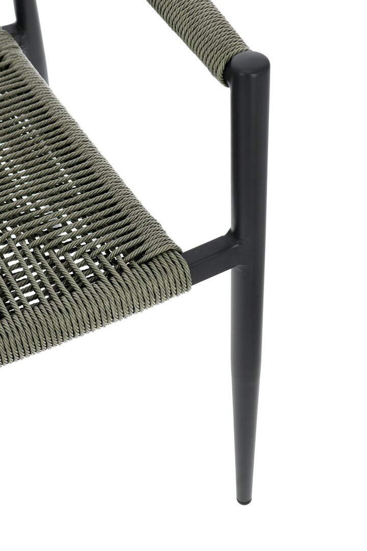 STRUCTURE EN ALUMINIUM, PEINT À POUDRE (POLYESTER), TRESSAGE EN FIBRE SYNTHÉTIQUE (TORDU). EMPILABLE.