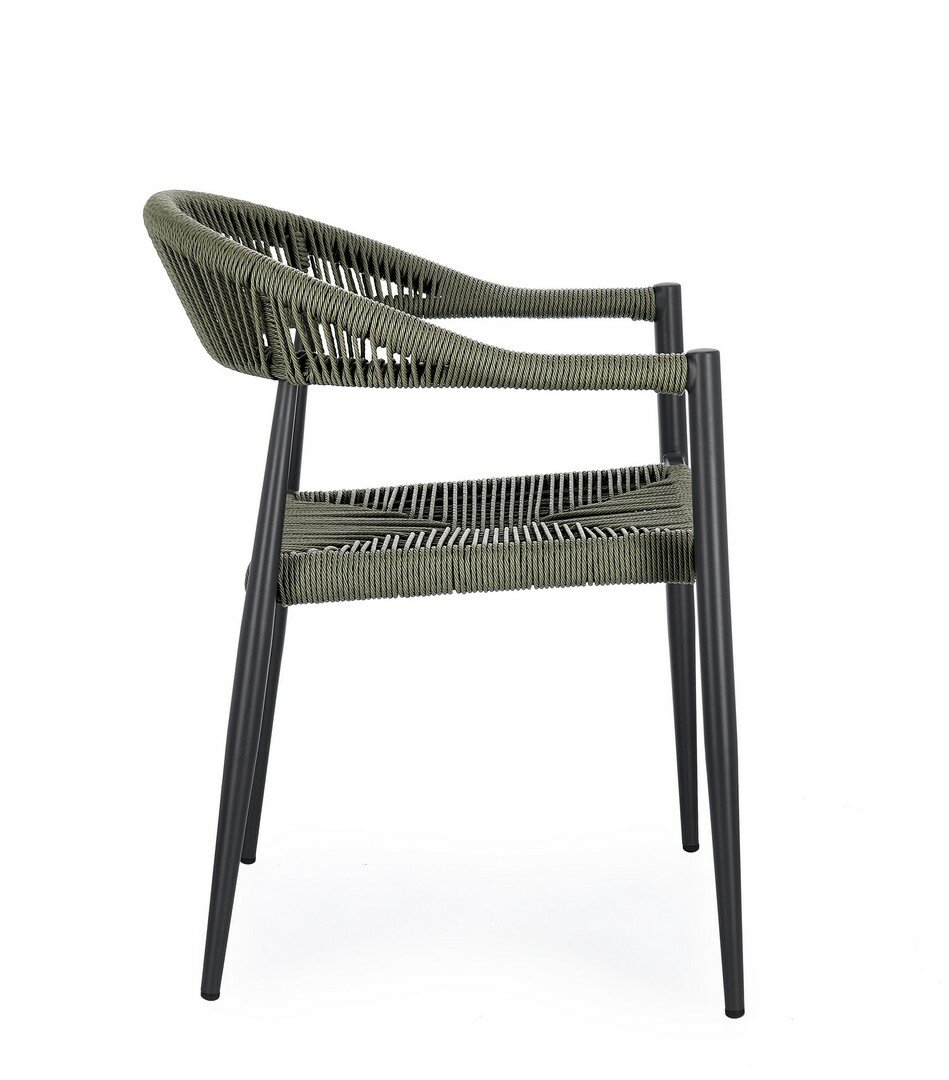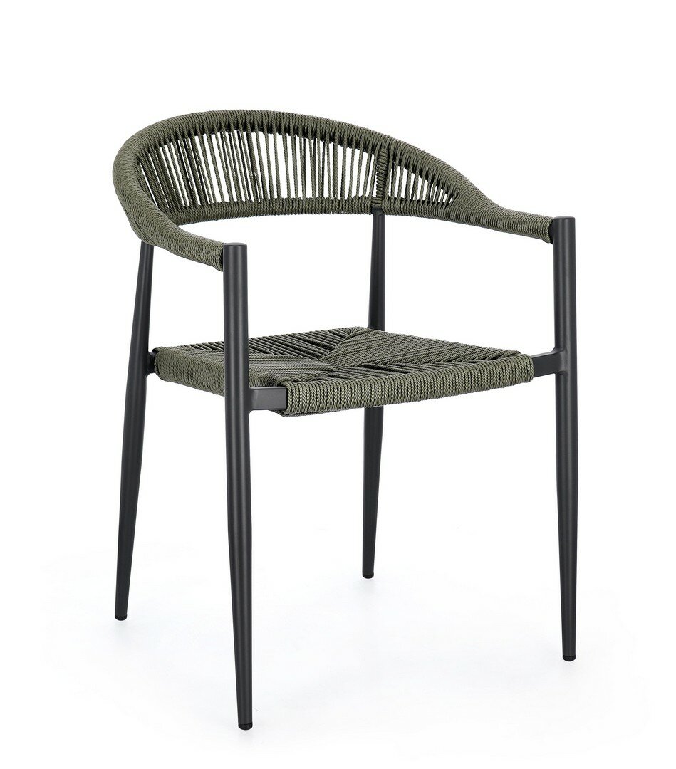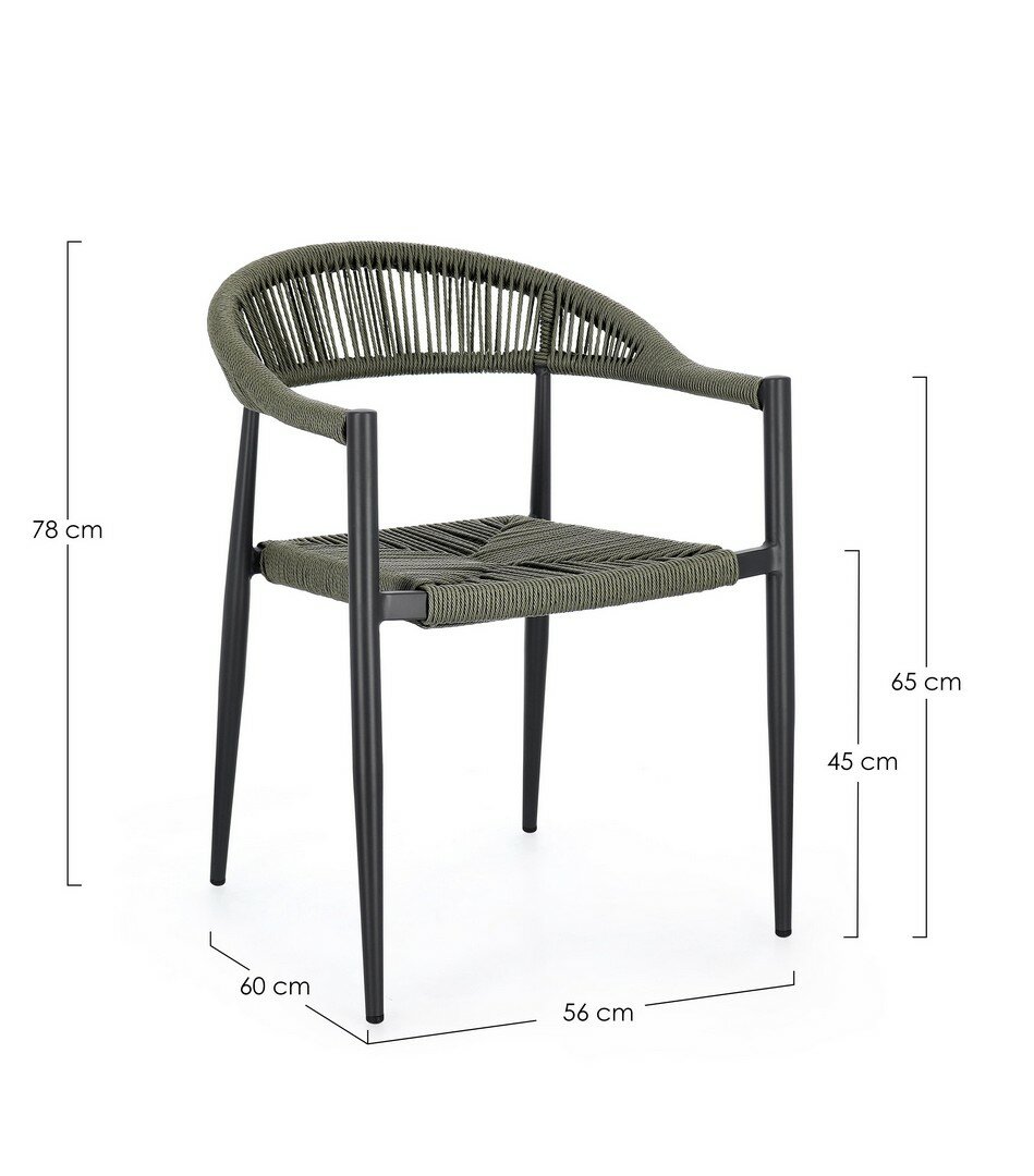 STRUCTURE EN ALUMINIUM, PEINT À POUDRE (POLYESTER), TRESSAGE EN FIBRE SYNTHÉTIQUE (TORDU). EMPILABLE.