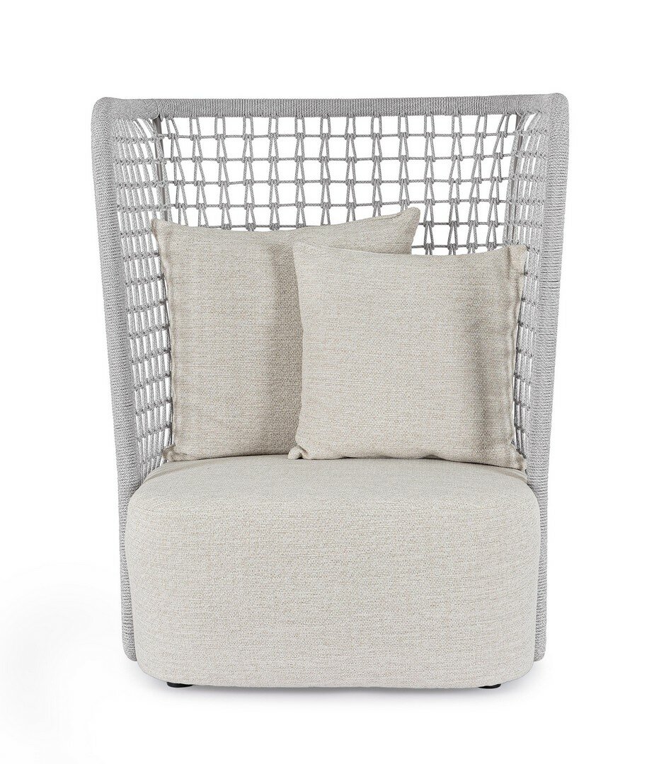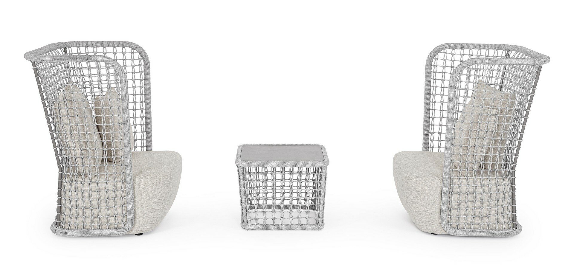 STRUCTURE EN ALUMINIUM PEINT À POUDRE (POLYESTER). TRESSAGE EN CORDE OLEFIN (100% POLYPROPYLÈNE).