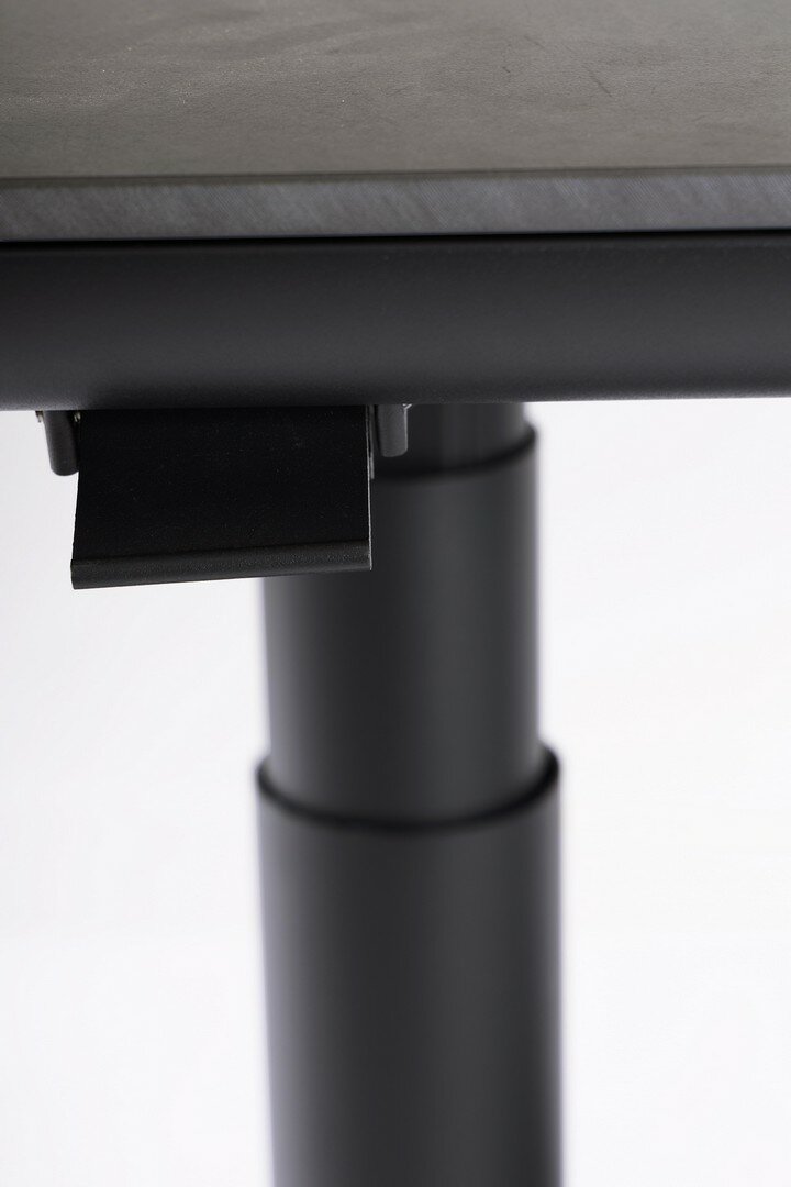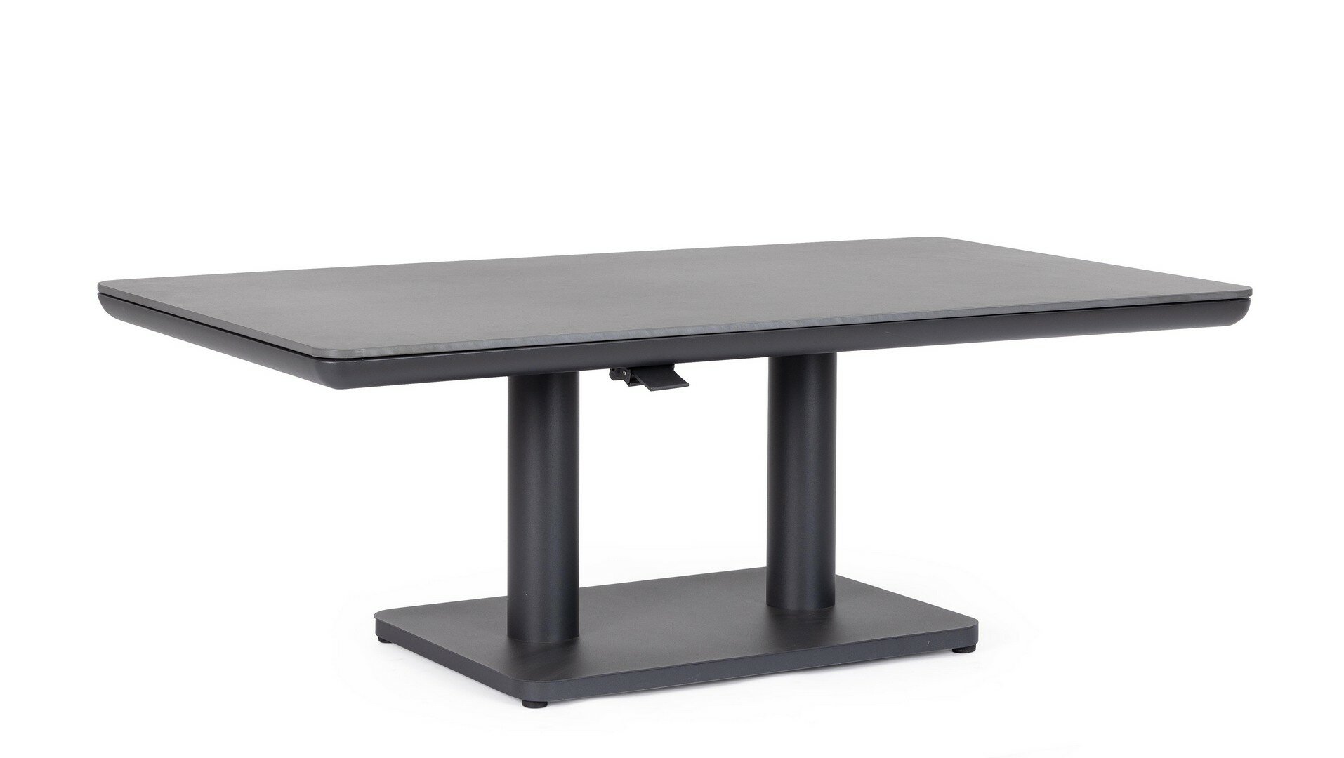 STRUCTURE EN ALUMINIUM PEINT À POUDRE (POLYESTER). PLATEAU EN PIERRE SINTÉRISÉE (PIERRE NATURELLE TRAVAILLÉE À HAUTES TEMPÉRATURES)(ÉPAISSEUR 11MM). HAUTEUR RÉGLABLE EN POSITION LIBRE PAR POIGNÉE. VIS EN ACIER INOXYDABLE. BASE À ASSEMBLER.