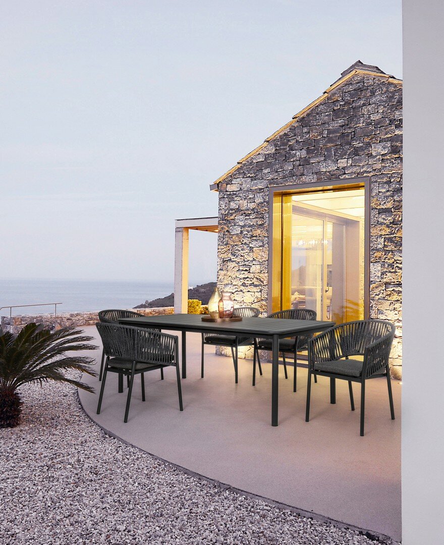 • STRUCTURE EN ALUMINIUM PEINT À POUDRE (POLYESTER). PLATEAU EN VERRE AVEC EFFET MATERIQUE DE PIERRE NATURELLE. VISSERIE EN ACIER INOXYDABLE. PIEDS À ASSEMBLER.