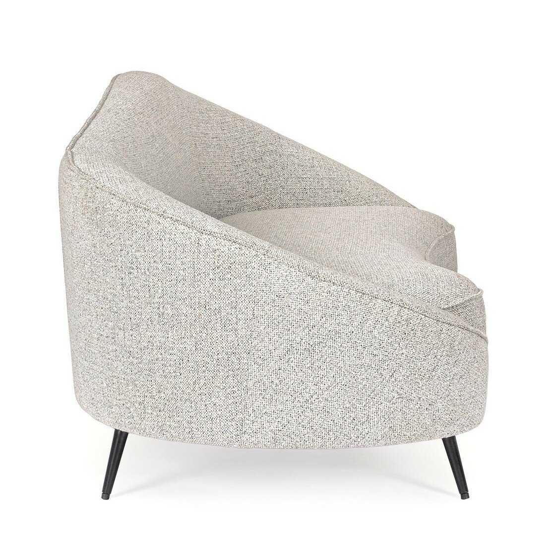 STRUCTURE EN CONTREPLAQUÉ. REVÊTEMENT EN POLYESTER. REMBOURRAGE EN MOUSSE DE POLYURÉTHANE (DENSITÉ 25 KG/M3 ASSISE, 22KG/M3 DOSSIER). PIEDS (À ASSEMBLER) EN ACIER PEINT À POUDRE ÉPOXY.