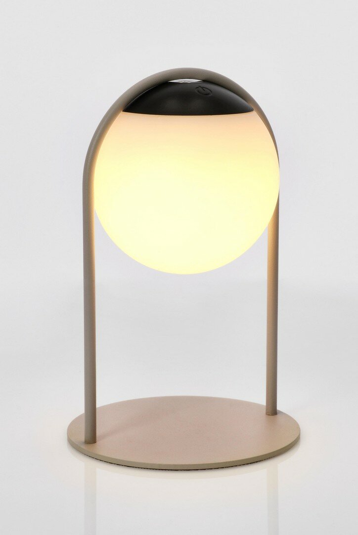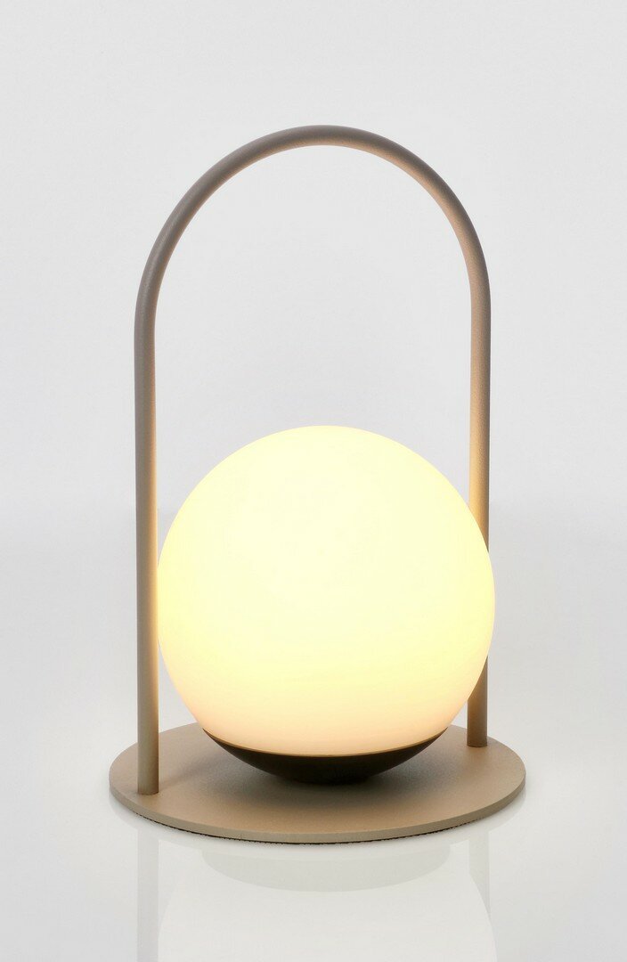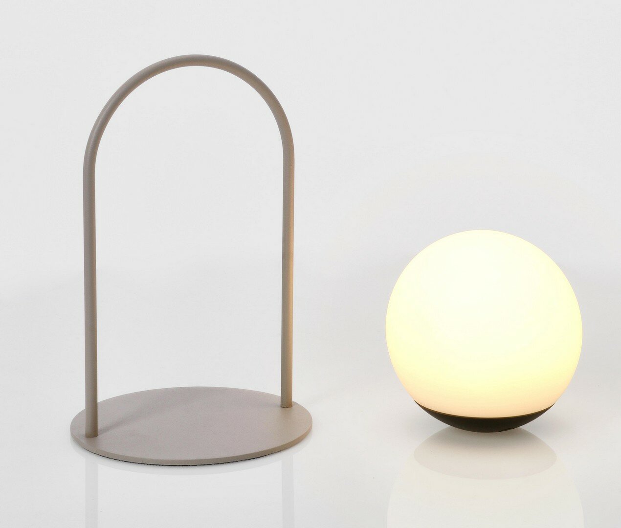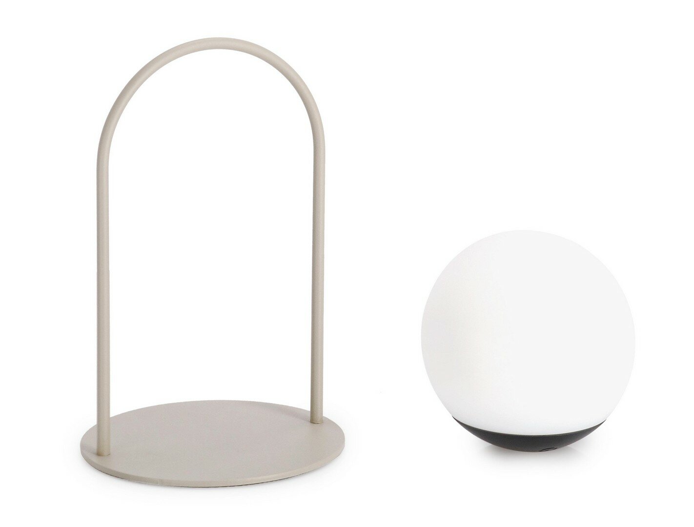 STRUTTURA IN METALLO VERNICIATO A POLVERE EPOSSIDICA. SFERA RIMOVIBILE IN PE CON MAGNETE. LAMPADA LED. LUCE CALDA. LUCE DIMMERABILE TENENTO PREMUTO IL TASTO ON/OFF TOUCH, CON MEMORIA. RICARICABILE CON CAVO USB 1 MT INCLUSO. PER USO INTERNO ED ESTERNO, IP44. DA ASSEMBLARE.
