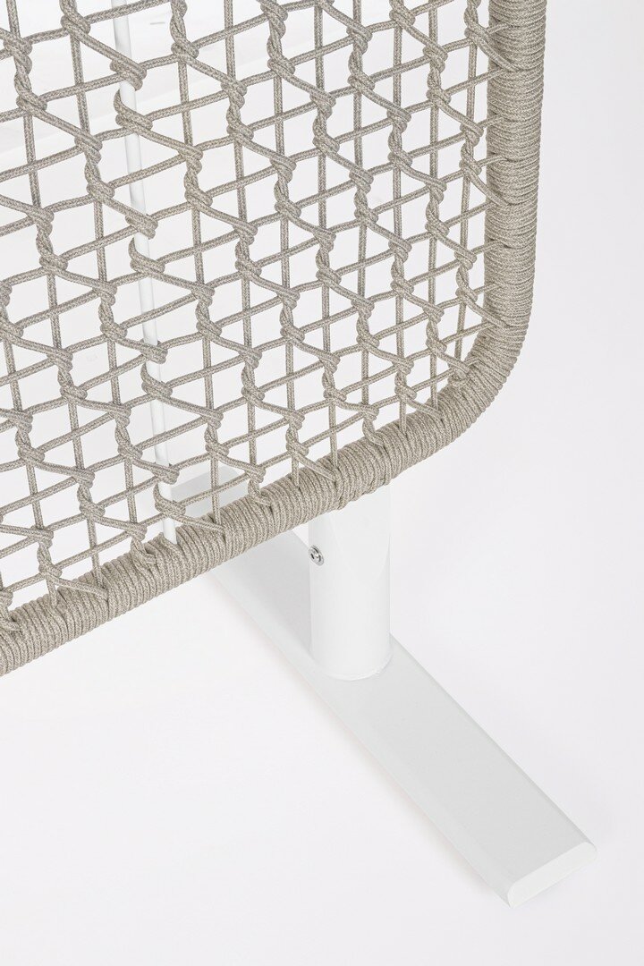 STRUTTURA IN ALLUMINIO VERNICIATO A POLVERE (POLIESTERE). INTRECCIO CON CORDA IN OLEFIN (100% POLIPROPILENE). PIEDINI REGOLABILI. VITERIA IN ACCIAIO INOSSIDABILE. GAMBE DA ASSEMBLARE.