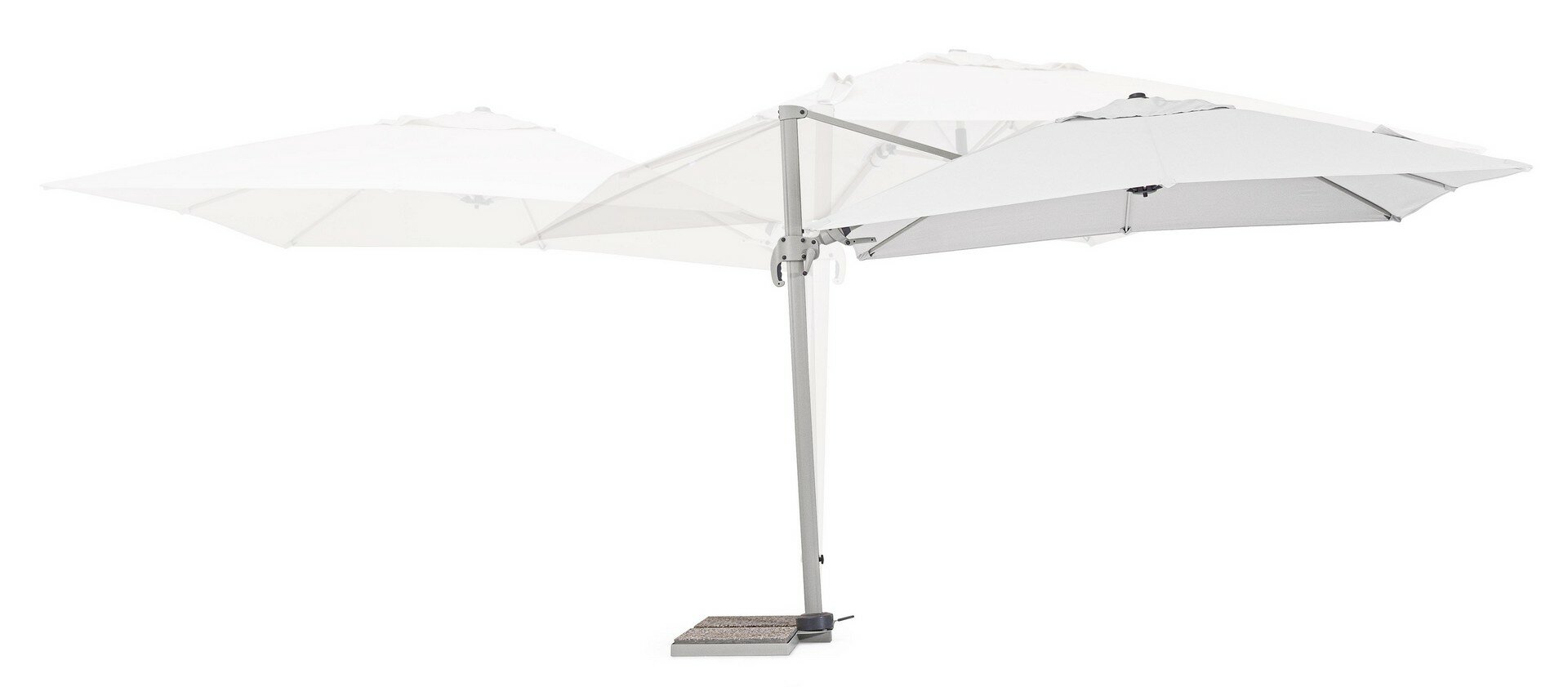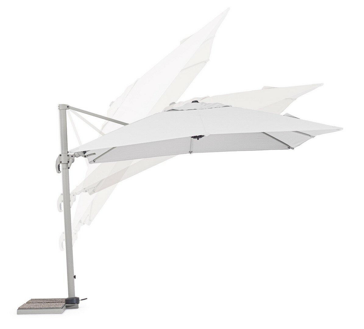STRUTTURA IN ALLUMINIO VERNICIATA A POLVERE (POLIESTERE). PALO 50x78x1.6MM. 8 STECCHE 23x12x1.0MM. TELO COLOR GRIGIO IN POLIESTERE 250GR/M2 CON RIVESTIMENTO IN PA (POLIAMMIDE) CON CAMINO ANTIVENTO. BASE LATERALE IN ACCIAIO. PALO GIREVOLE 360° CON PEDALINA. INCLINAZIONE VERTICALE CON IMPUGNATURA A 5 POSIZIONI. DOTATO DI MANIGLIA PER INCLINAZIONE OMBRELLO DESTRA-SINISTRA. MARMETTE NON INCLUSE.PREDISPOSIZIONE LAMPADA LED COD.0795364 E SPEAKER COD.0795365. SI RACCOMANDA L’USO DI ALMENO 4 MARMETTE (100 KG).