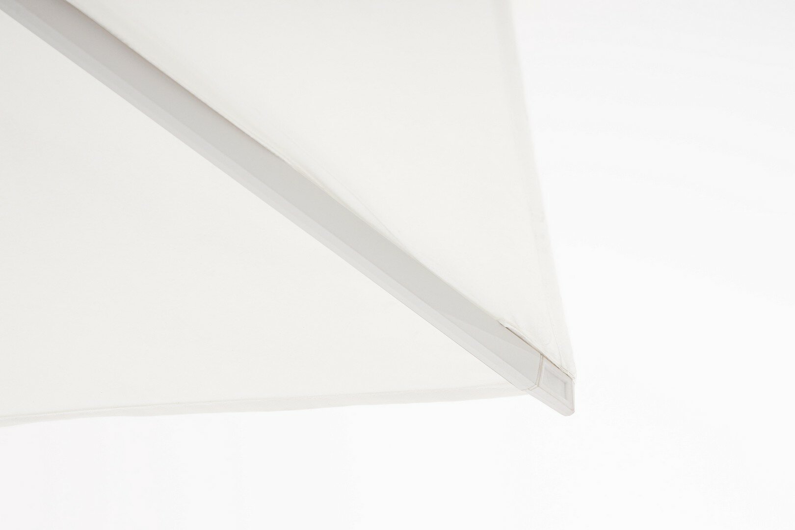 STRUTTURA IN ALLUMINIO VERNICIATA A POLVERE (POLIESTERE). PALO 55X82MM. 8 STECCHE 14.5X24MM. TELO BIANCO IN POLIESTERE 250GR/M2 CON RIVESTIMENTO IN PA (POLIAMMIDE) CON CAMINO ANTIVENTO. BASE A CROCE IN ACCIAIO. PALO GIREVOLE 360° CON PEDALINA. INCLINAZIONE VERTICALE CON IMPUGNATURA A 5 POSIZIONI. COMPRENSIVO DI COPRIOMBRELLONE. MARMETTE NON INCLUSE.