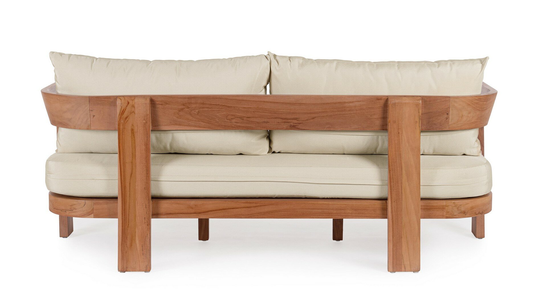 STRUTTURA IN IN TEAK – SVLK (LEGNO CERTIFICATO PROVENIENTE DA FORESTE SOSTENIBILI), FINITURA FINALE A BASE D’ACQUA. CUSCINI SFODERABILI IN TESSUTO IDROREPELLENTE SUNPROOF OLEFIN (100%POLYPROPYLENE). IL TEAK È UN LEGNO RICCO DI OLII. CON IL PASSARE DEL TEMPO, QUESTI OLII, PER UN PROCESSO NATURALE, RISALGONO IN SUPERFICIE E POSSONO MACCHIARE EVENTUALI CUSCINI A DIRETTO CONTATTO CON IL LEGNO.