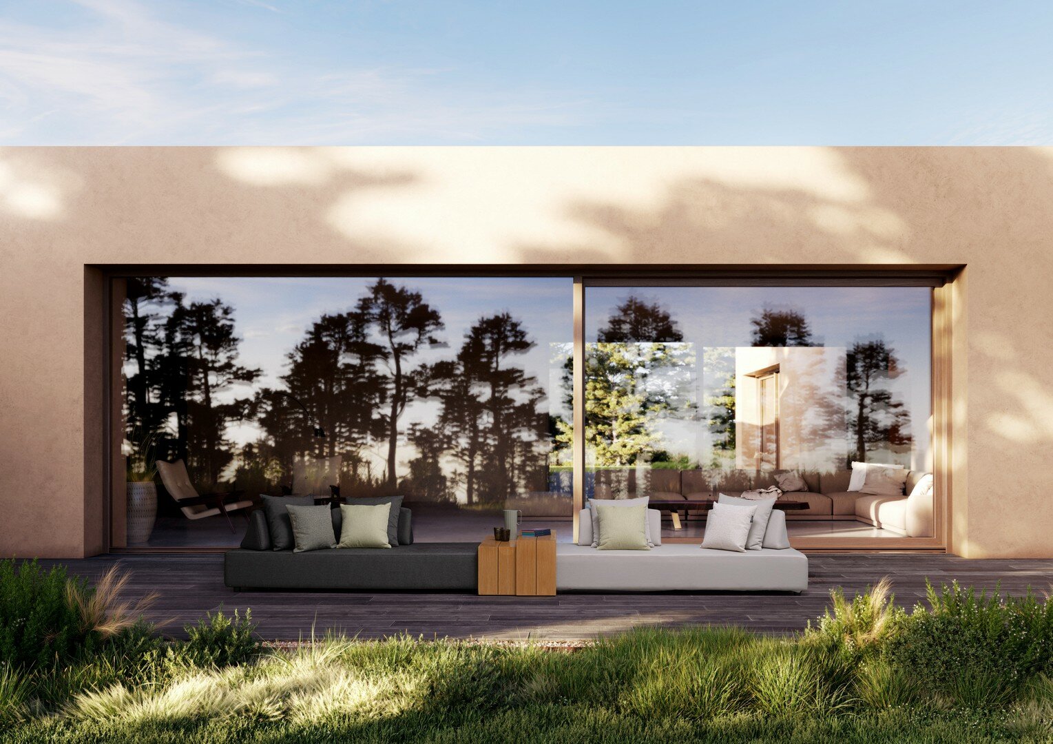 DIVANO CON STRUTTURA IN ALLUMINIO. SCHIENALI REMOVIBILI CON STRUTTURA IN ACCIAIO, GALVANIZZATA A CALDO E VERNICIATA A POLVERE (POLIESTERE). SEDUTA, SCHIENALI E CUSCINI SFODERABILI IN TESSUTO PER ESTERNO OLEFIN (100% POLIPROPILENE, 285GR/M2), IDROREPELLENTE E RESISTENTE AI RAGGI UV (GRADO 7), IMPERMEABILIZZATO INTERNAMENTE CON RIVESTIMENTO IN TESSUTO (POLIURETANO). IMBOTTITURA IN SCHIUMA POLIURETANICA, DENSITA’ SEDUTA 38KG/M3, SCHIENALI 20KG/M3. ARTICOLO COMPOSTO DA: N °1 DIVANO, N°2 SCHIENALI MEZZALUNA, N°2 CUSCINI.