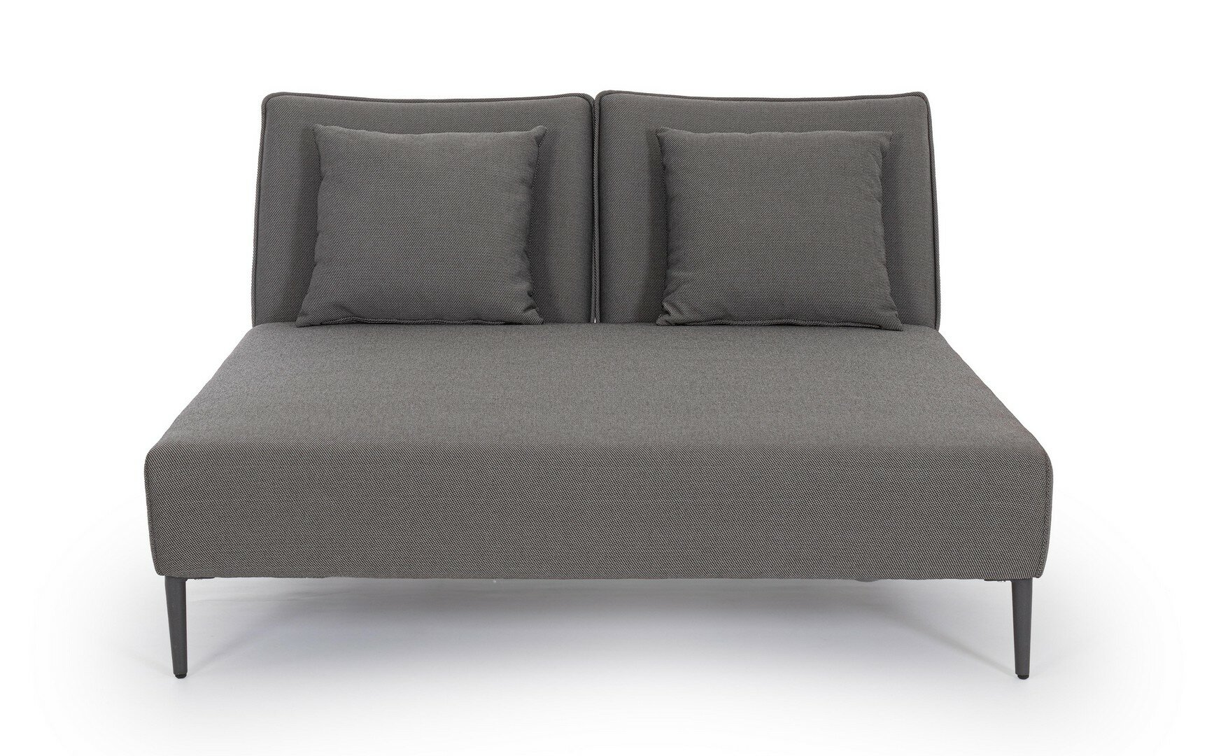 STRUTTURA IN ALLUMINIO. SEDUTA E SCHIENALE (RECLINABILE IN LIBERA POSIZIONE) NON SFODERABILI IN TESSUTO PER ESTERNO IN OLEFIN (100% POLIPROPILENE, 285GR/M2), IDROREPELLENTE E RESISTENTE AI RAGGI UV (GRADO 7), IMPERMEABILIZZATO INTERNAMENTE CON RIVESTIMENTO IN TESSUTO (POLIURETANO). IMBOTTITURA IN SCHIUMA POLIURETANICA, DENSITA’ 40KG/M3. INCLUSO DI CUSCINETTO SFODERABILE. PIEDINI REGOLABILI DA ASSEMBLARE.