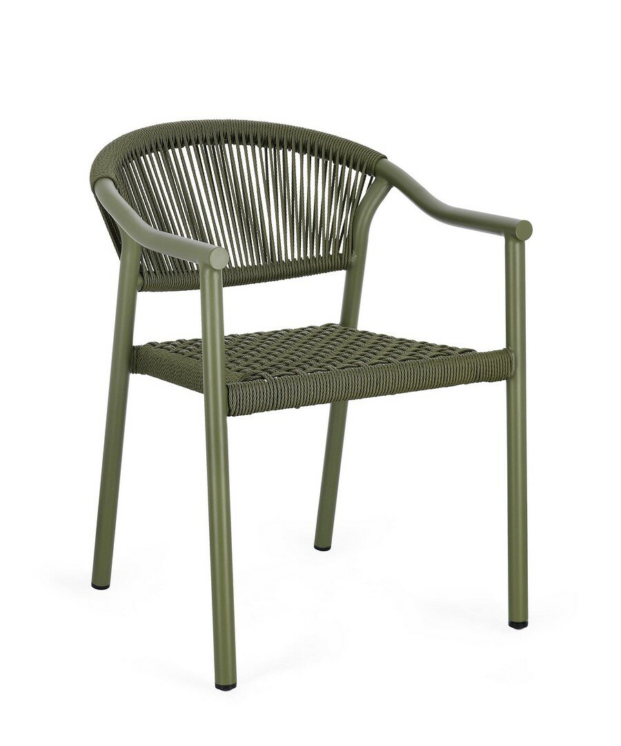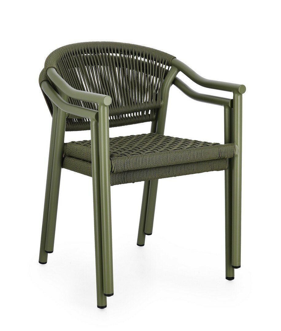 STRUTTURA IN ALLUMINIO, VERNICIATA A POLVERE (POLIESTERE), INTRECCIO IN FIBRA SINTETICA (TWISTED). IMPILABILE.