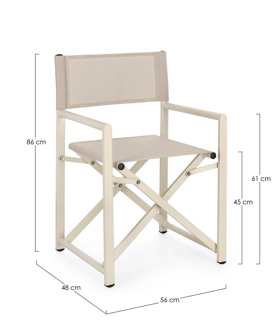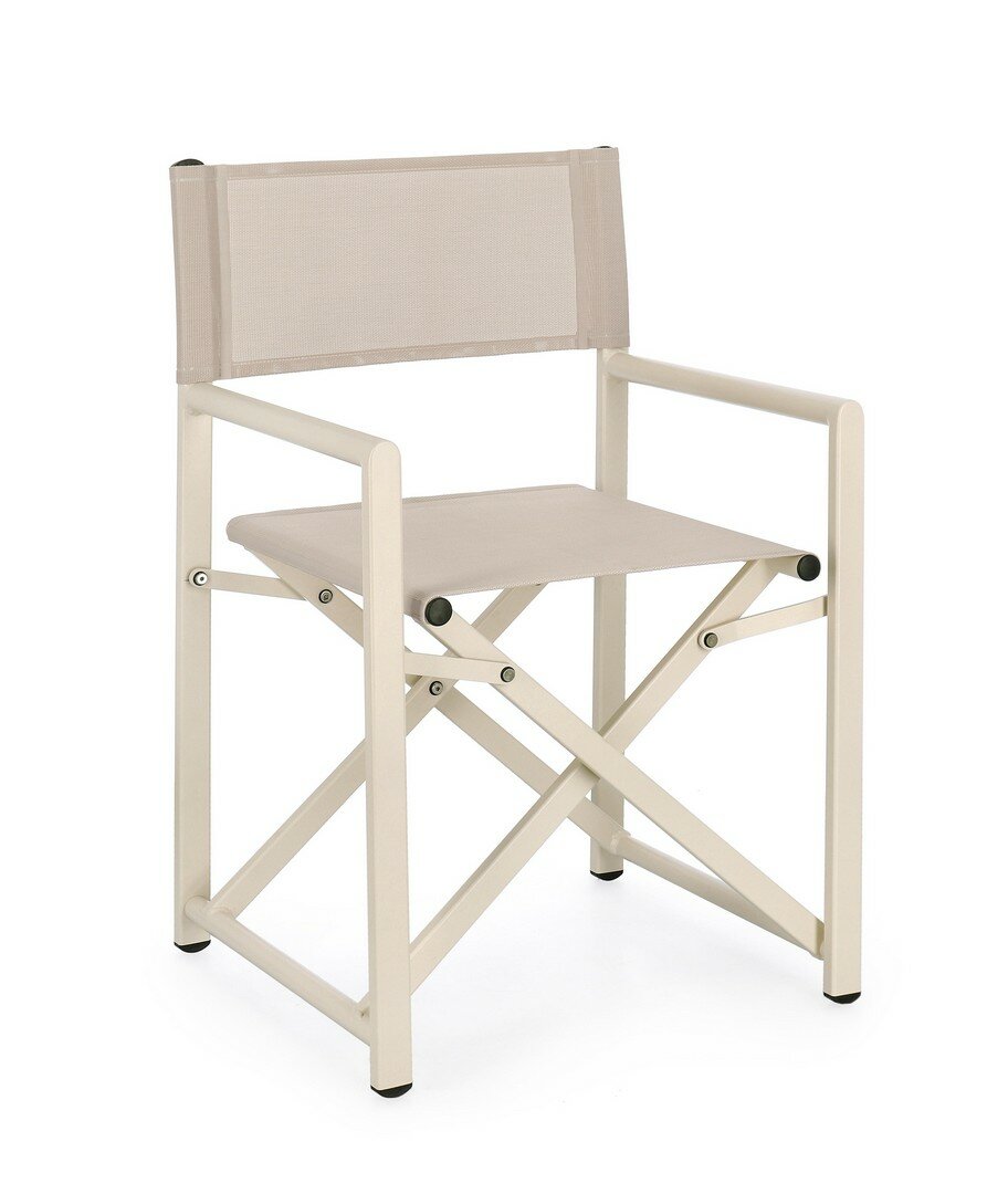 STRUTTURA IN ALLUMINIO, VERNICIATO A POLVERE (POLIESTERE). SEDUTA E SCHIENALE IN TEXTILENE 2X1 (610G/M2), CON CUCITURE TERMOSALDATE. FERRAMENTA IN ACCIAIO GALVANIZZATO. PIEGHEVOLE.