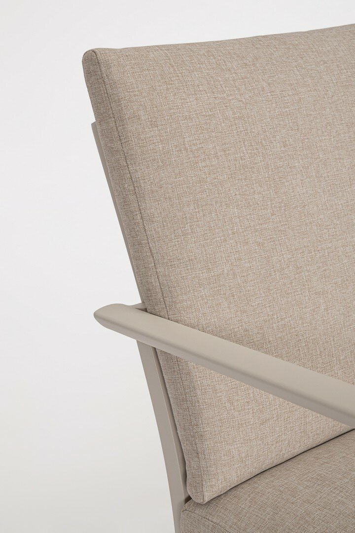 STRUTTURA IN ALLUMINIO, VERNICIATO A POLVERE (POLIESTERE). SEDUTA E SCHIENALE IN TEXTILENE 1X1. CUSCINI SFODERABILI CON TESSUTO IDROREPELLENTE OLEFIN (100% POLIPROPILENE). VITERIA IN ACCIAIO INOSSIDABILE. SCHIENALI E GAMBE TAVOLINO DA ASSEMBLARE.