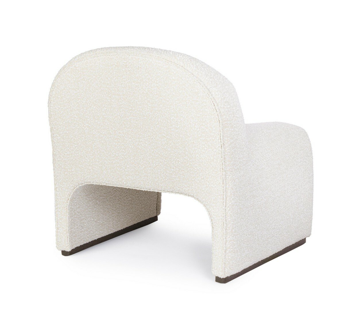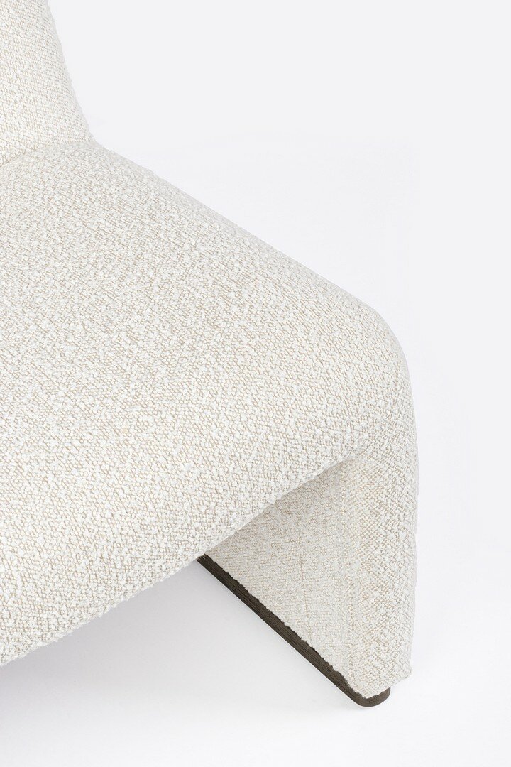 STRUTTURA IN LEGNO DI PINO E COMPENSATO. PIEDINI IN RUBBERWOOD. RIVESTIMENTO IN POLIESTERE EFFETTO BOUCLE’. DENSITA’ IMBOTTITURA IN SCHIUMA POLIURETANICA 16/24 KG/M3.