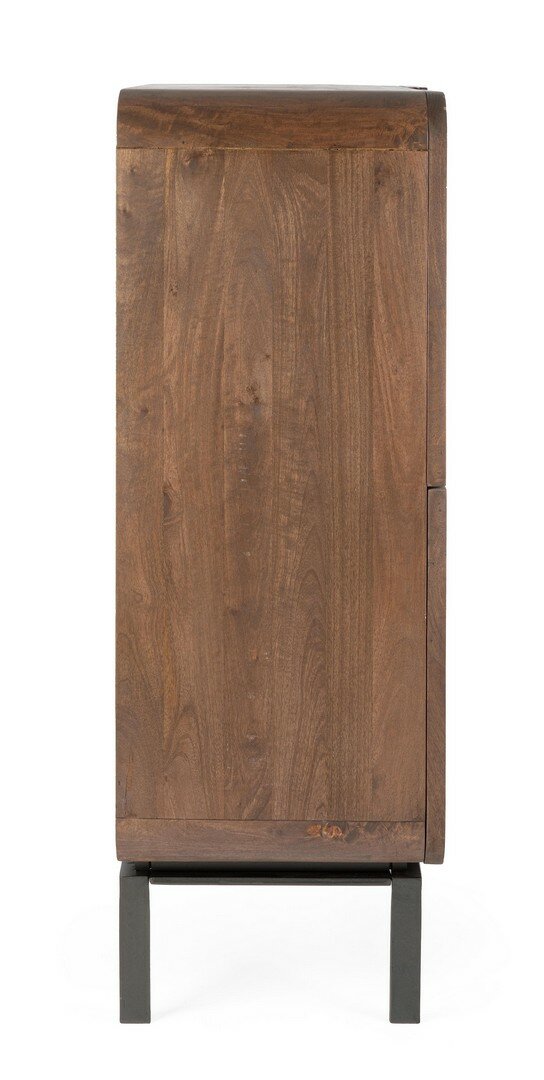 STRUTTURA IN LEGNO DI MANGO, SCHIENALE IN MDF. FINITURA A BASE DI NITROCELLULOSA. BASE GAMBE IN ACCIAIO VERNICIATO A POLVERE EPOSSIDICA. VANO PORTA COMPRENSIVO DI MENSOLA. GAMBE DA ASSEMBLARE.
