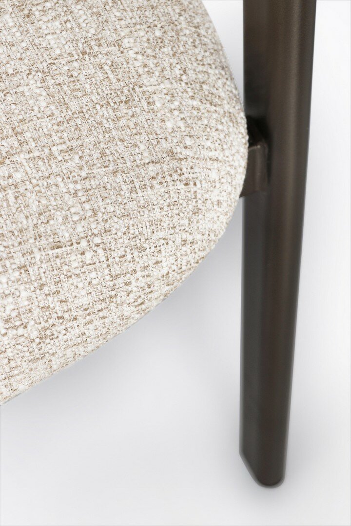 STRUTTURA IN ACCIAIO VERNICIATO A POLVERE EPOSSIDICA. SEDUTA E SCHIENALE CON RIVESTIMENTO IN POLIESTERE, EFFETTO MELANGE. DENSITA’ IMBOTTITURA IN SCHIUMA POLIURETANICA SEDUTA 24-28KG/M3, SCHIENALE 22-24KG/M3.