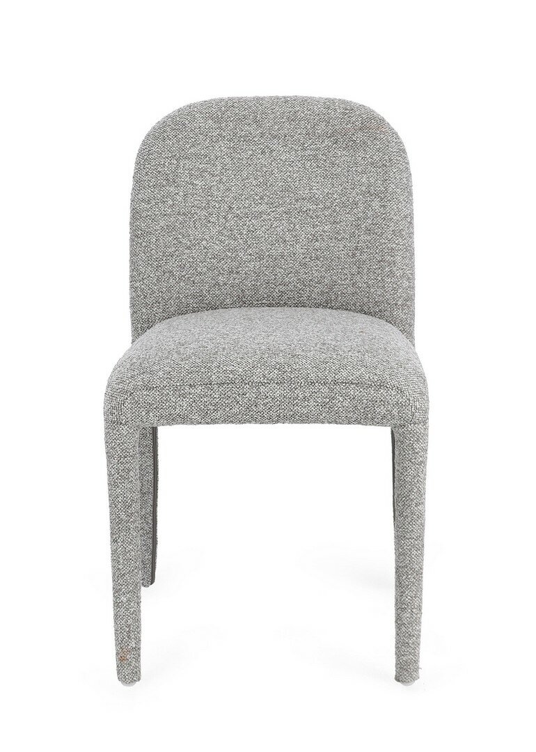 STRUTTURA E GAMBE IN ACCIAIO, SEDUTA IN COMPENSATO. RIVESTIMENTO IN 100% POLIESTERE EFFETTO BOUCLE. IMBOTTITURA IN SCHIUMA POLIURETANICA DENSITA’ SEDUTA 28KG/M3 SCHIENALE 24KG/M3.