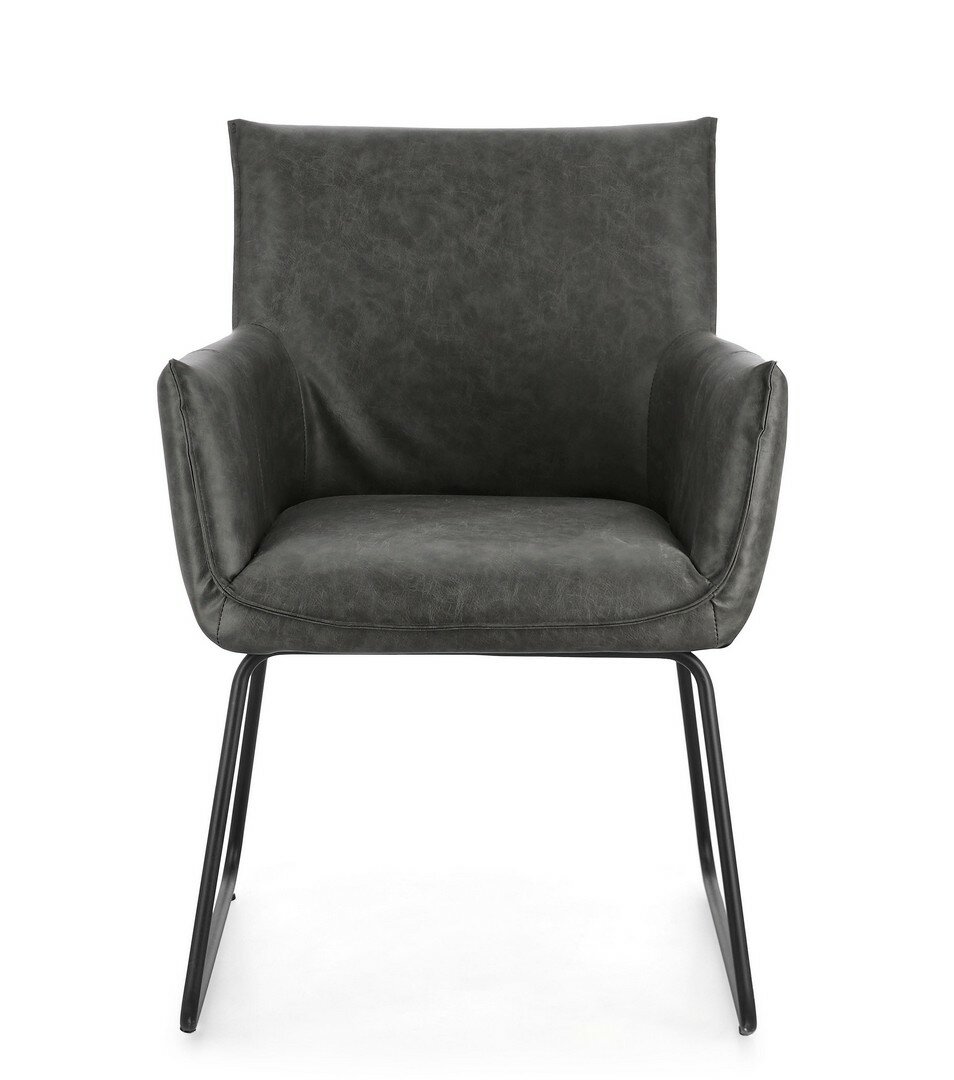 STRUTTURA IN ACCIAIO VERNICIATA A POLVERE EPOSSIDICA. SCHIENALE IN COMPENSATO IMPIALLACCIATO LEGNO DI PIOPPO. SEDUTA IN COMPENSATO CON RIVESTIMENTO IN 100% POLIESTERE. DA ASSEMBLARE.